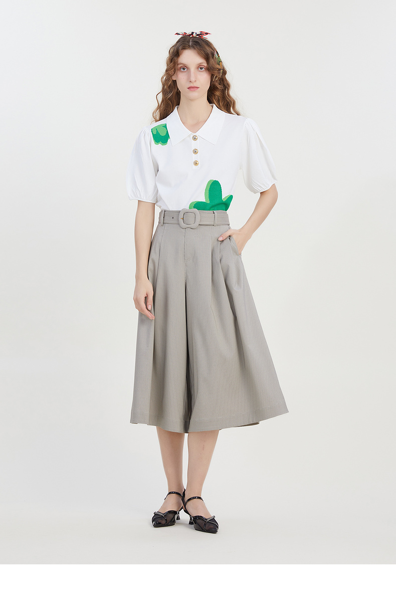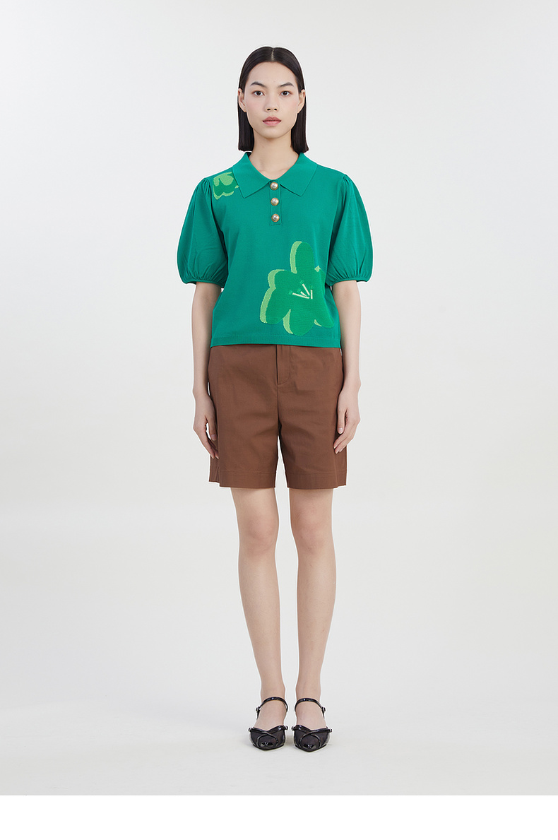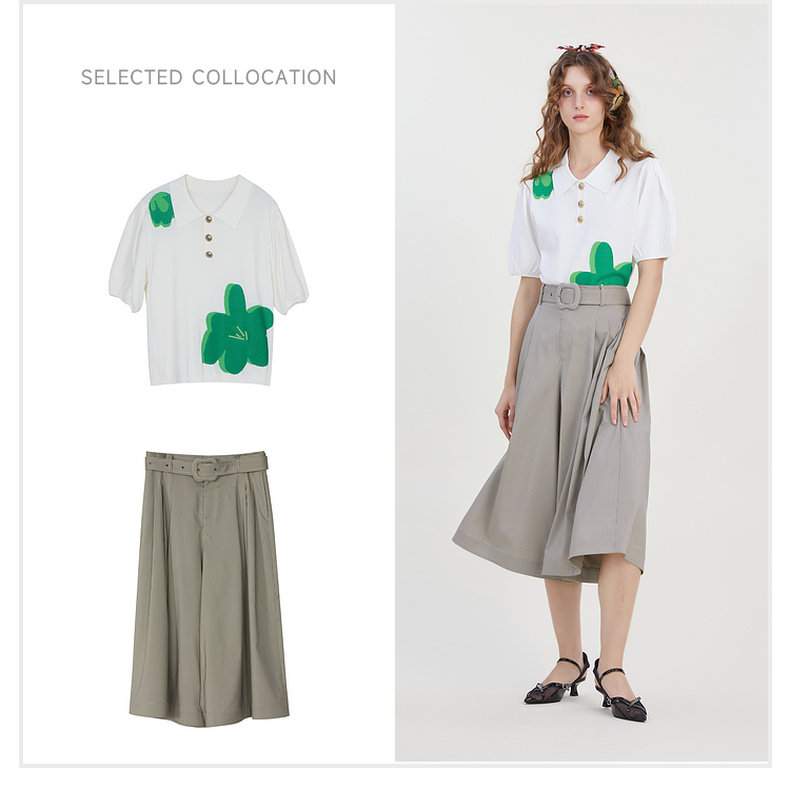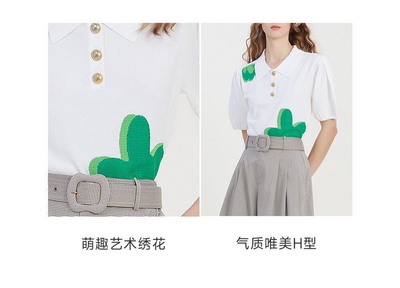 谜底POLO领针织上衣女2023夏季新款宽松大花针织衫短袖232MZ0859