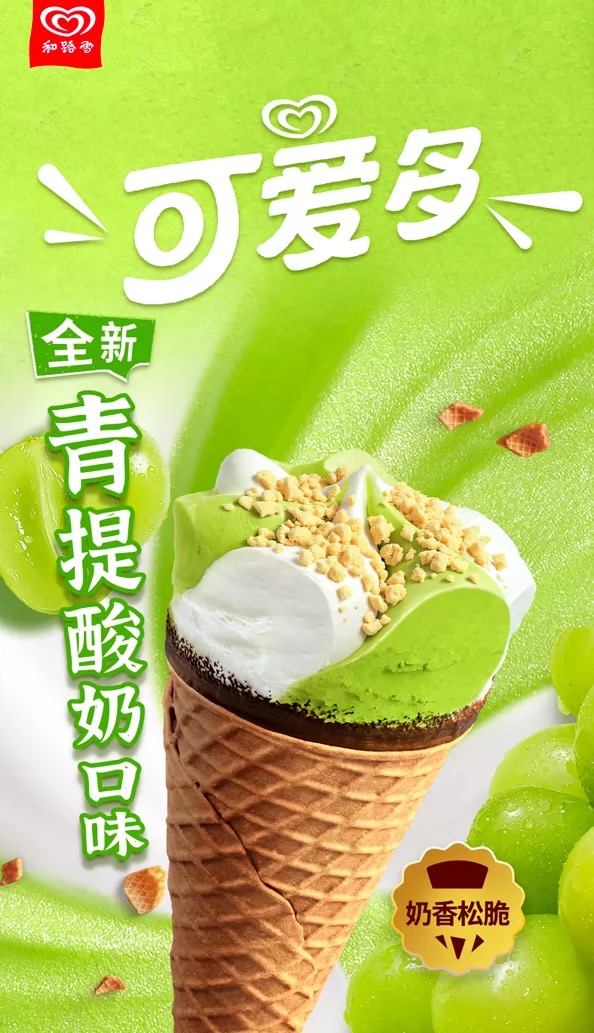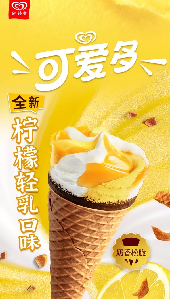 【新品尝鲜】和路雪可爱多甜筒青提酸奶/柠檬轻乳口味冰淇淋71G