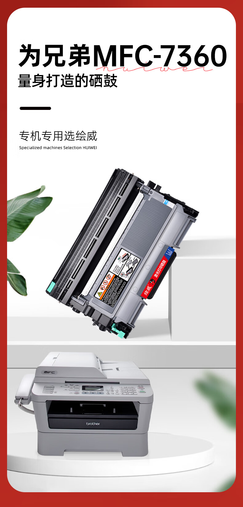 绘威适用兄弟7360硒鼓brother MFC-7360打印机粉盒 墨盒 墨粉盒 标准版硒鼓套装【鼓架粉盒】上机即用