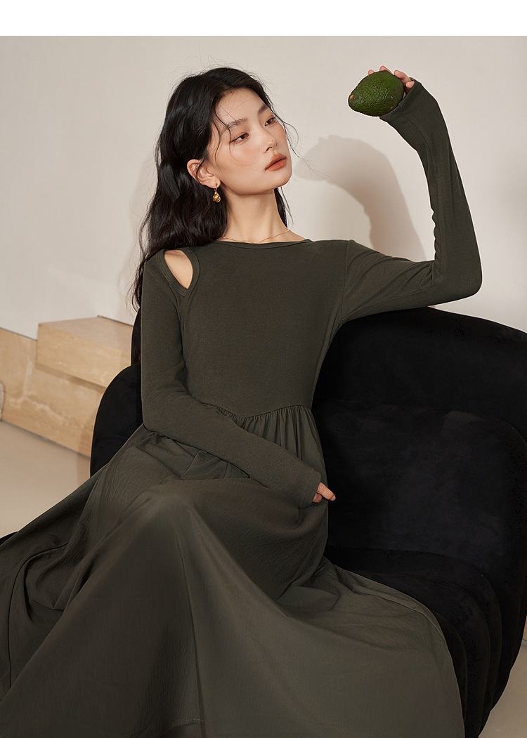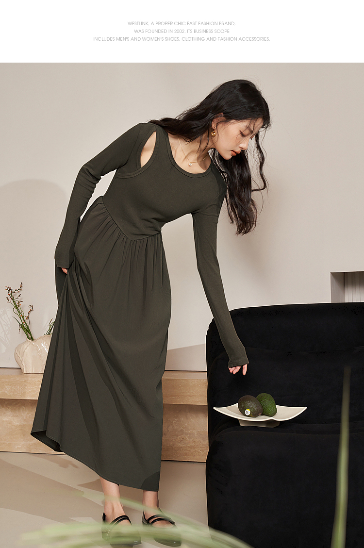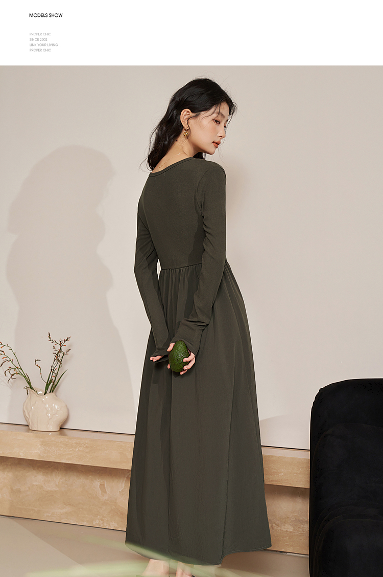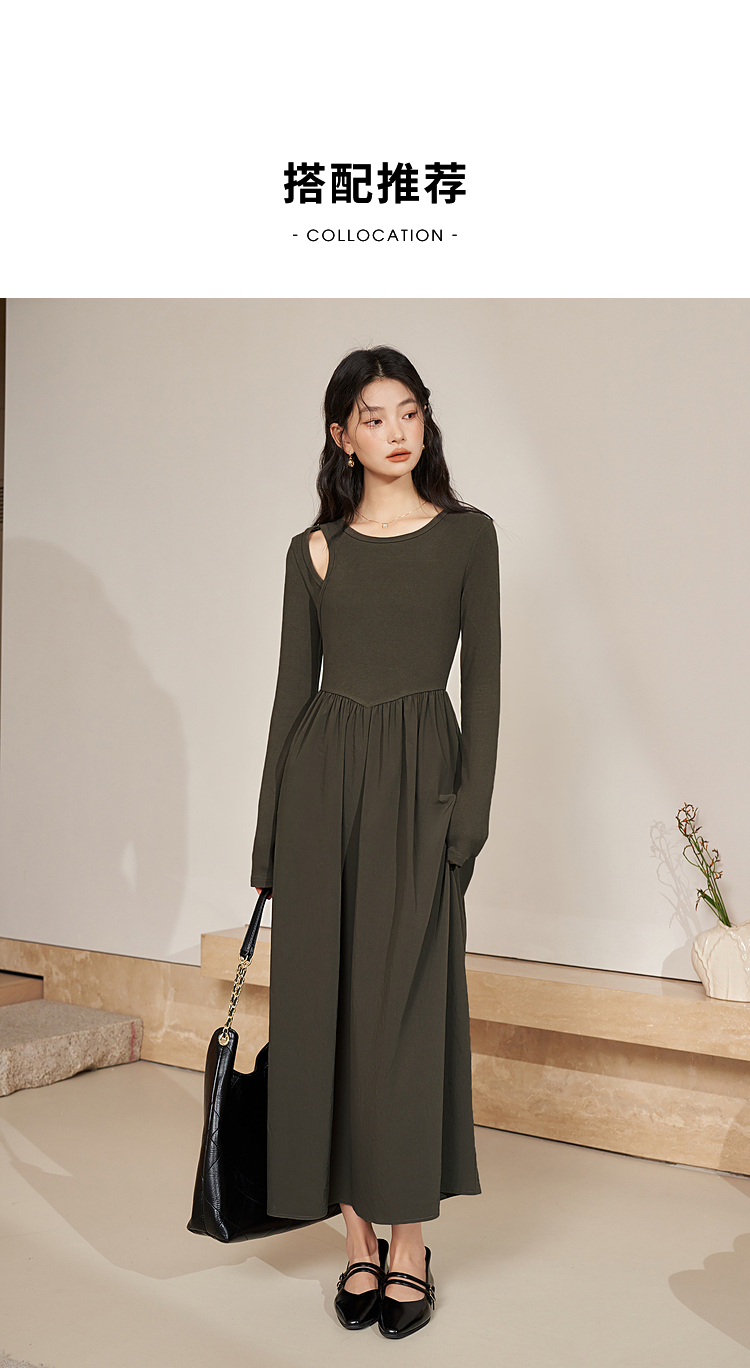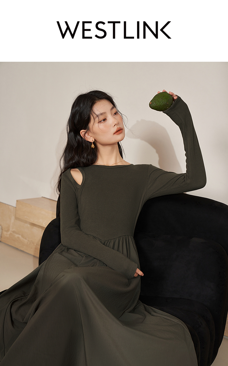 西遇法式长袖针织连衣裙女新款独特修身垂坠感长款伞裙D0032617