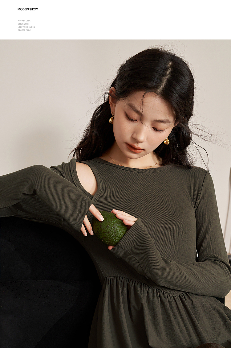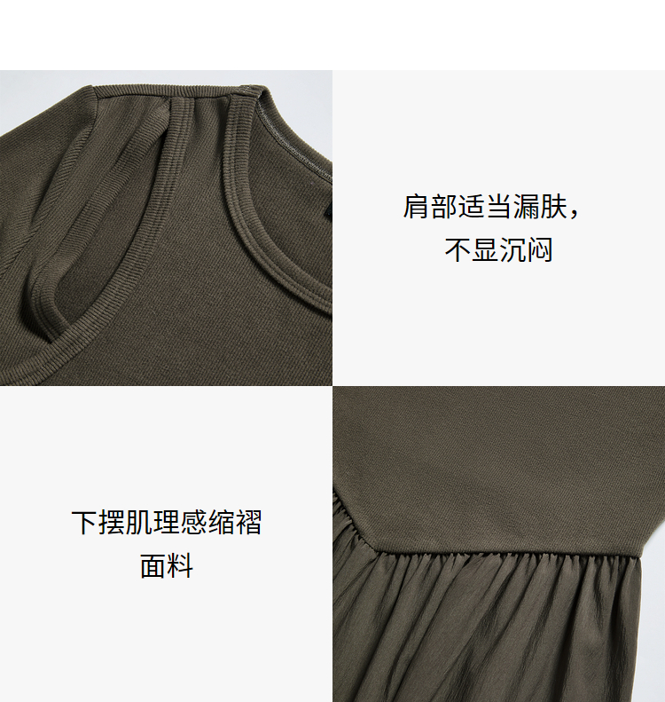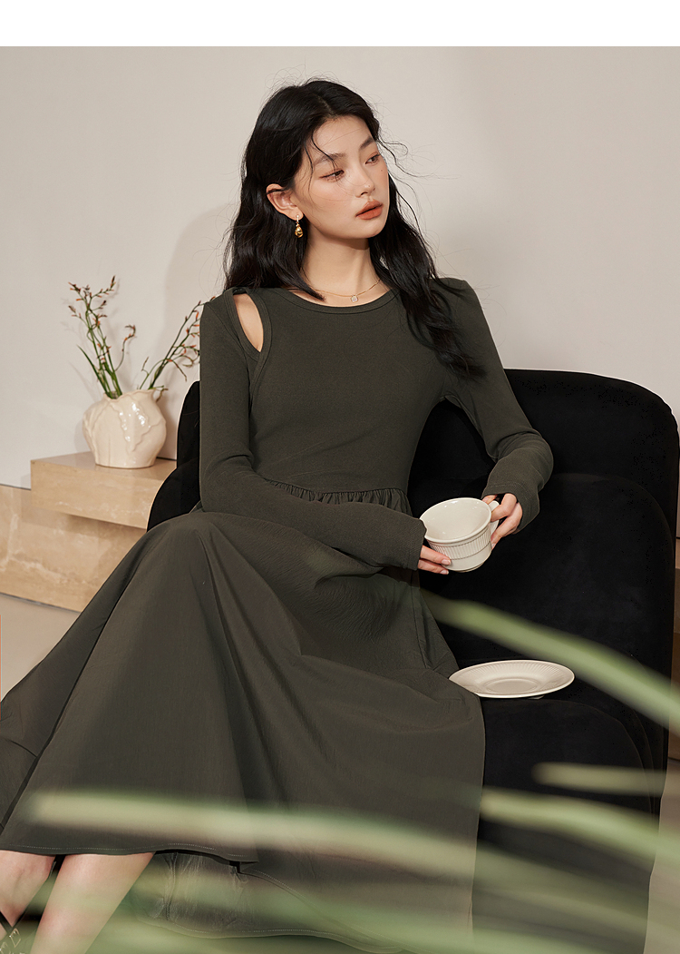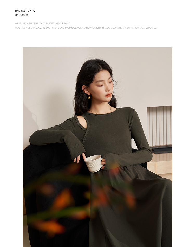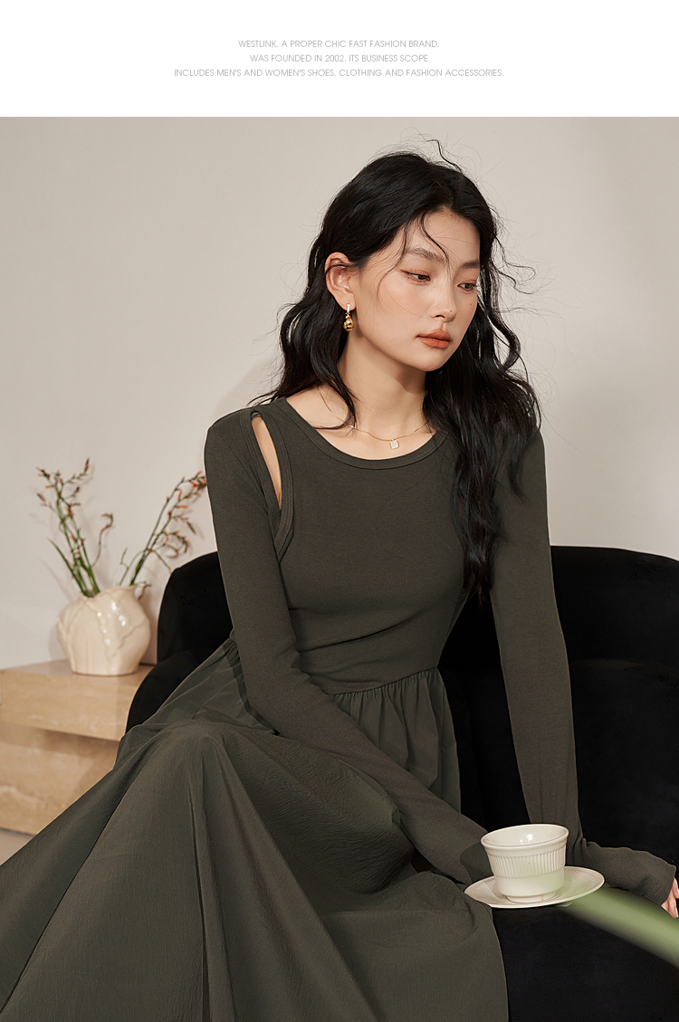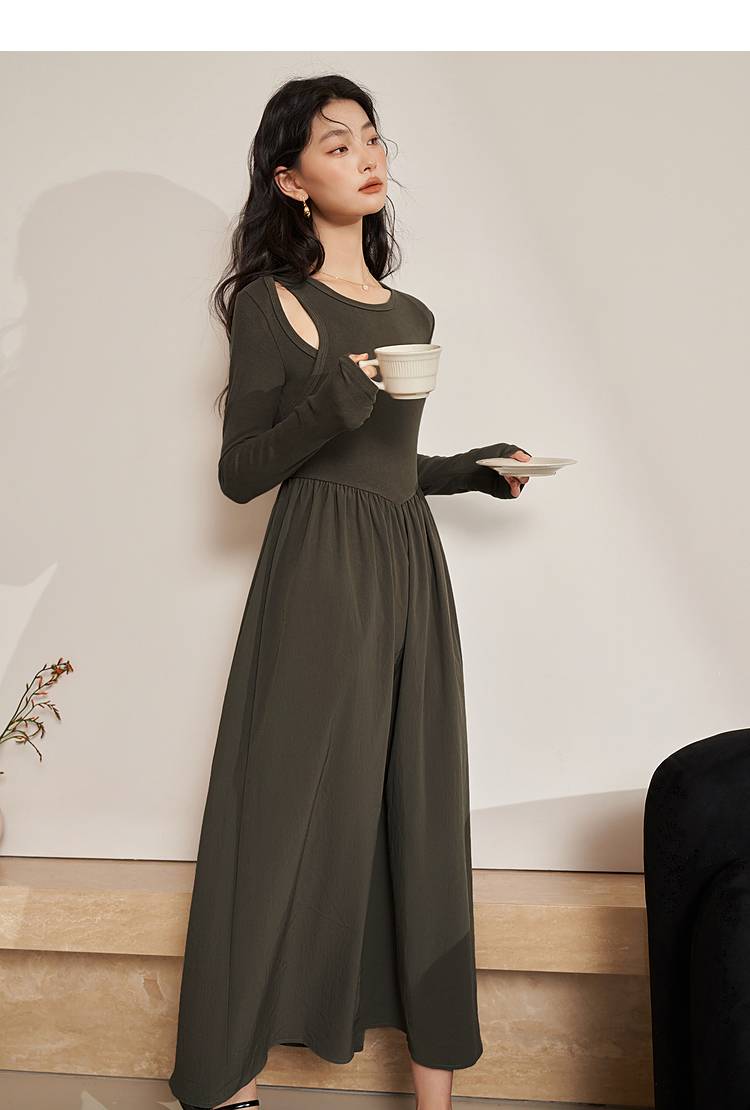 西遇法式长袖针织连衣裙女新款独特修身垂坠感长款伞裙D0032617