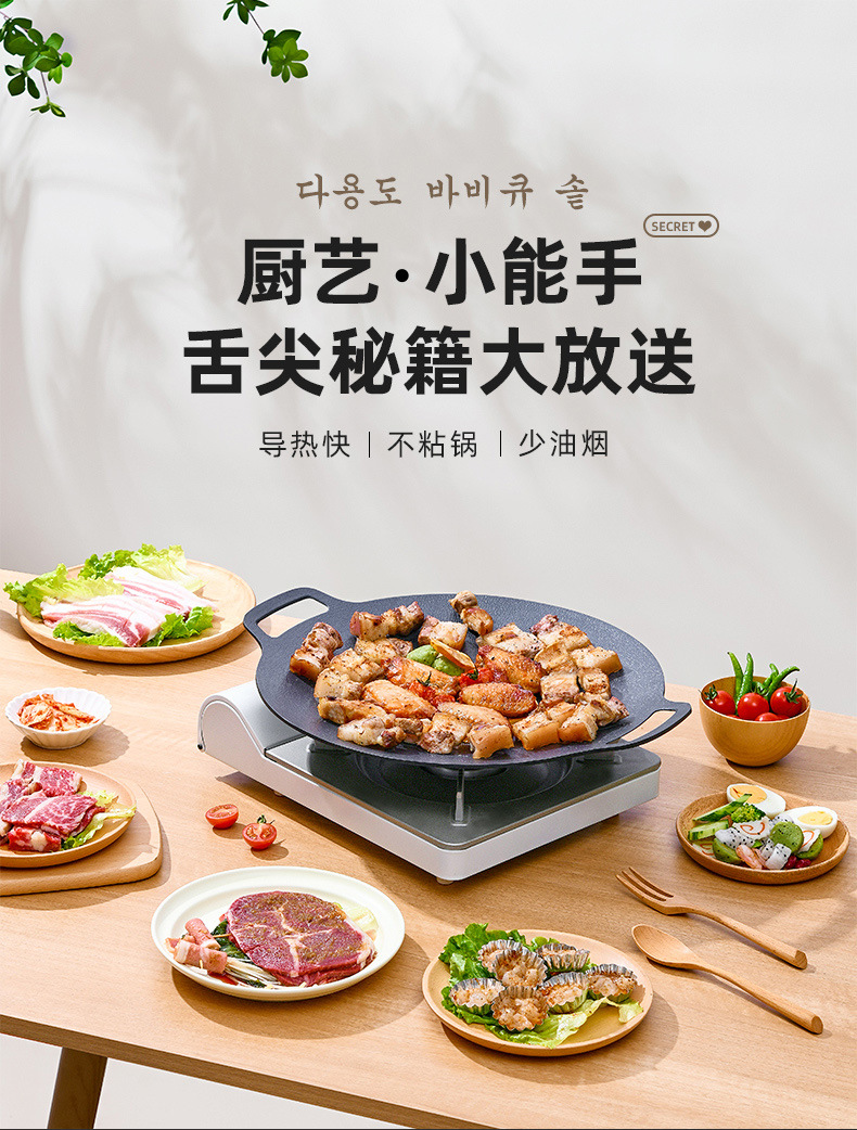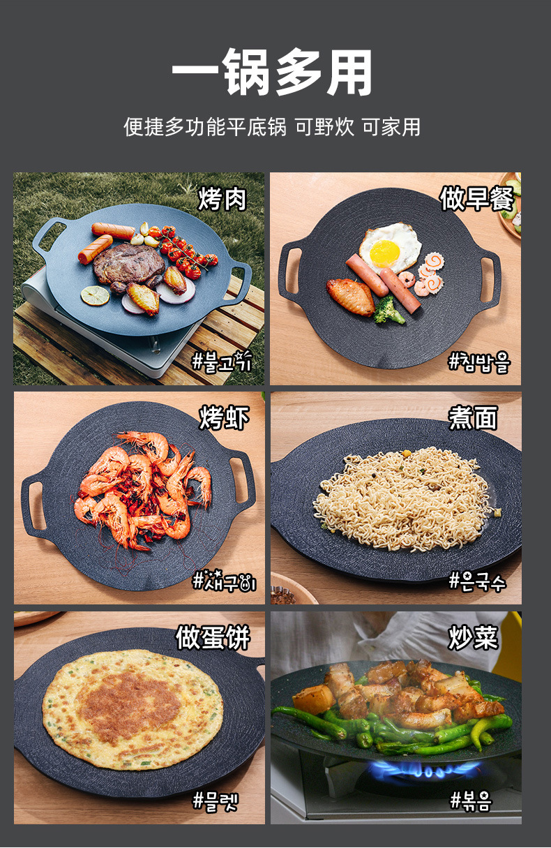 户外露营烧烤盘 不粘锅家用韩式烤肉盘 卡式炉商用便携麦饭石铁板烧