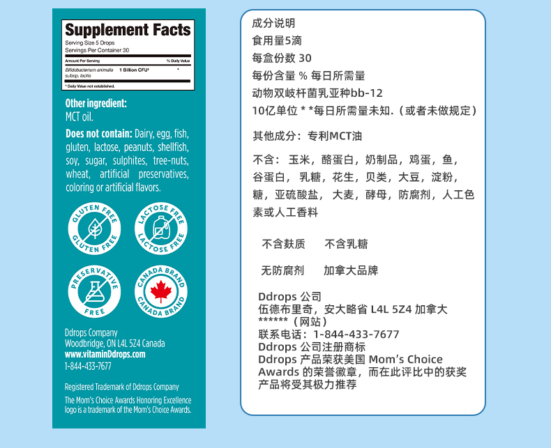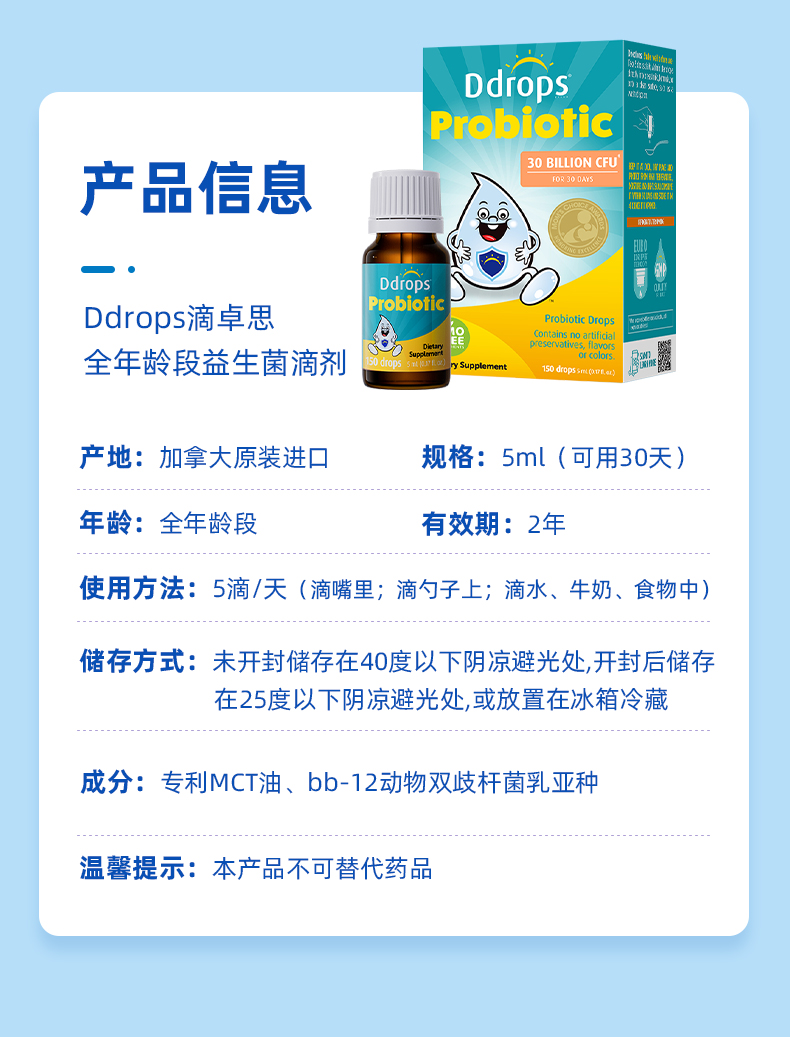 Ddrops滴卓思bb12动物双歧杆菌滴剂 调节肠道菌群 呵护宝宝肠道SC