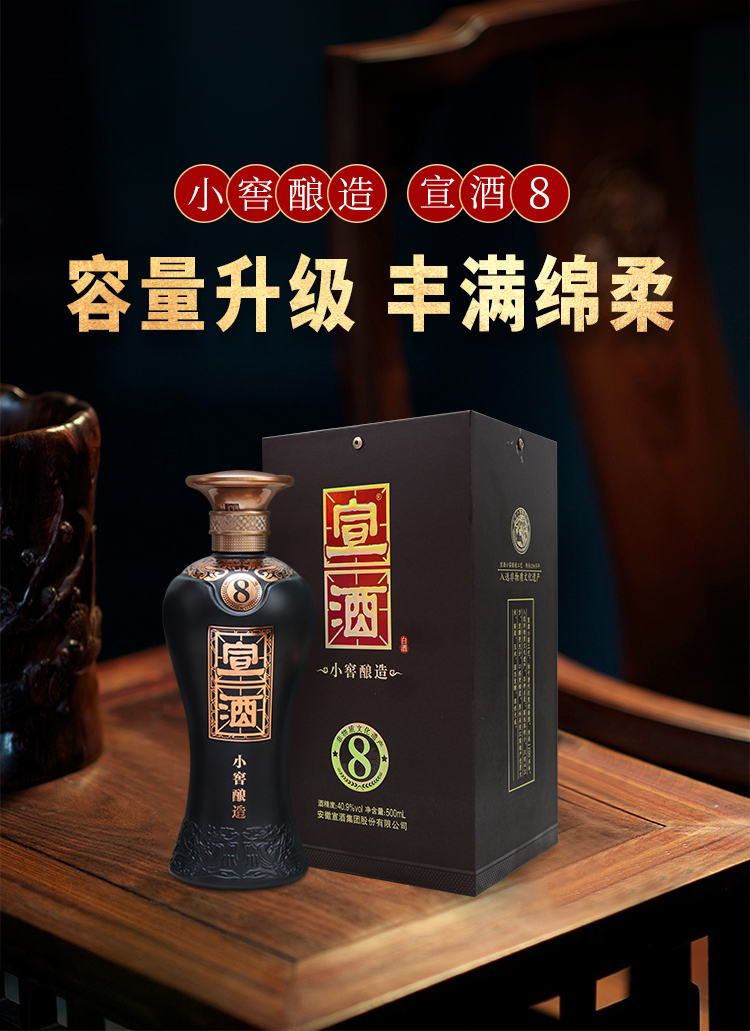 宣酒8 绵柔型40.9度500ml*4瓶 小窖酿造盒装白酒