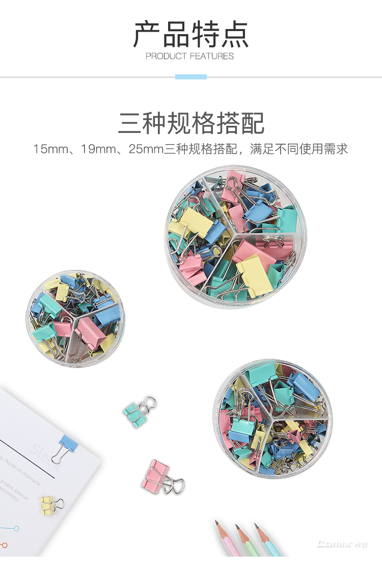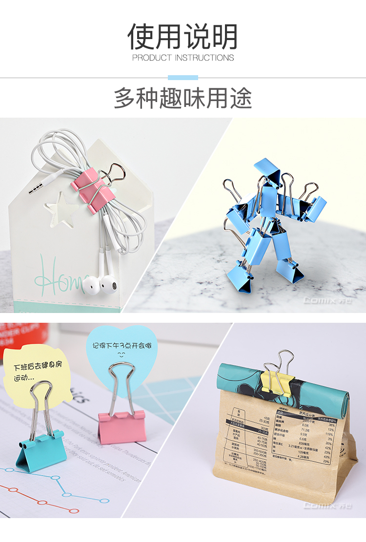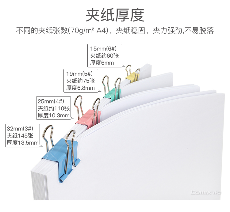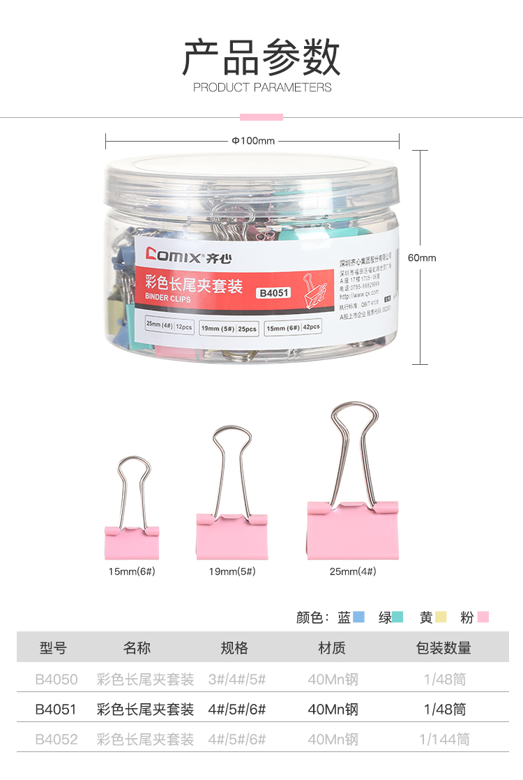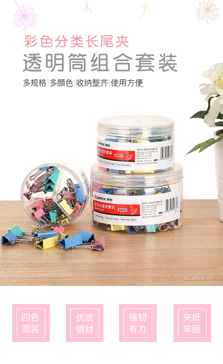 齐心彩色长尾票夹B4051套装(4、5、6#)