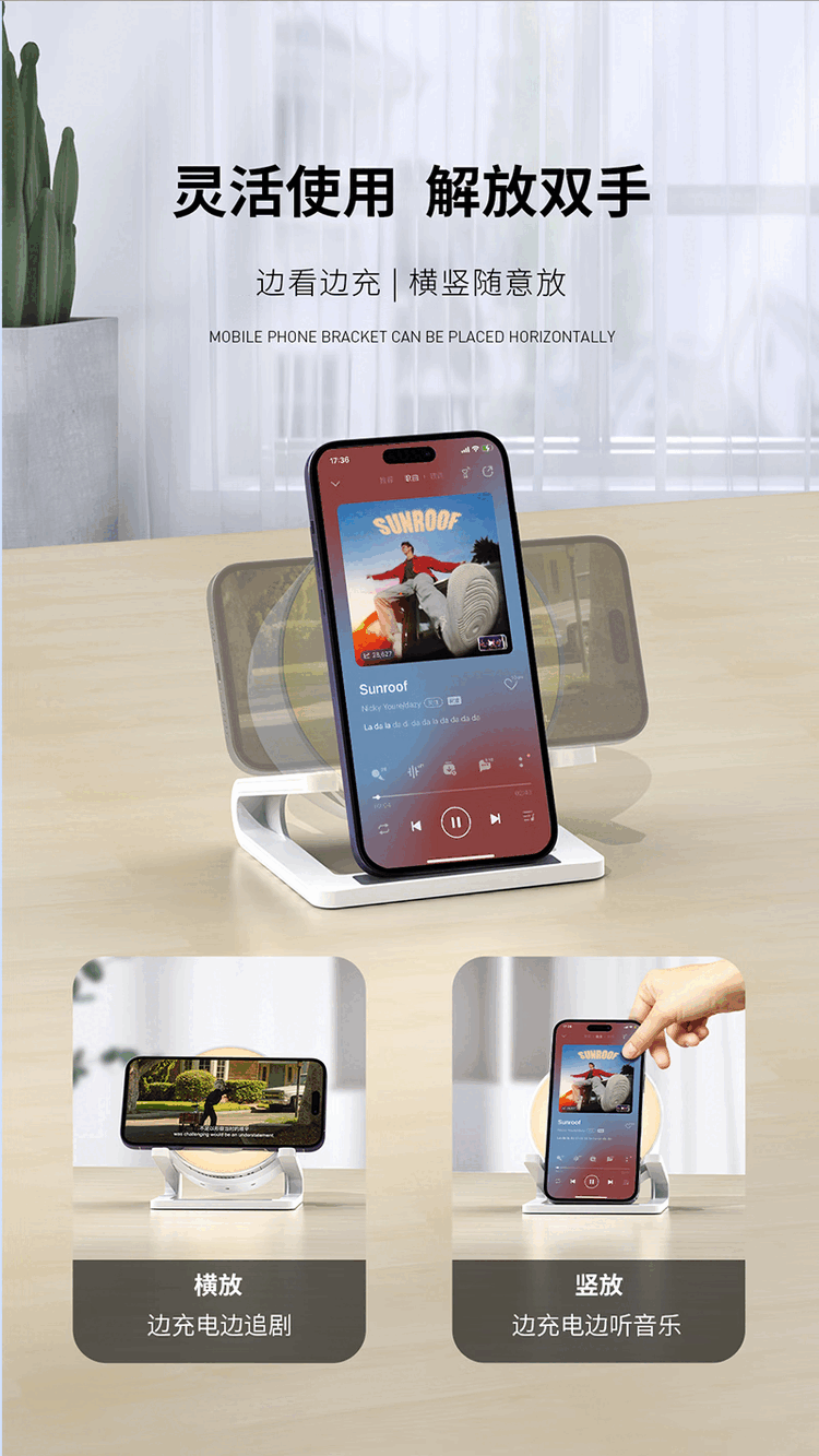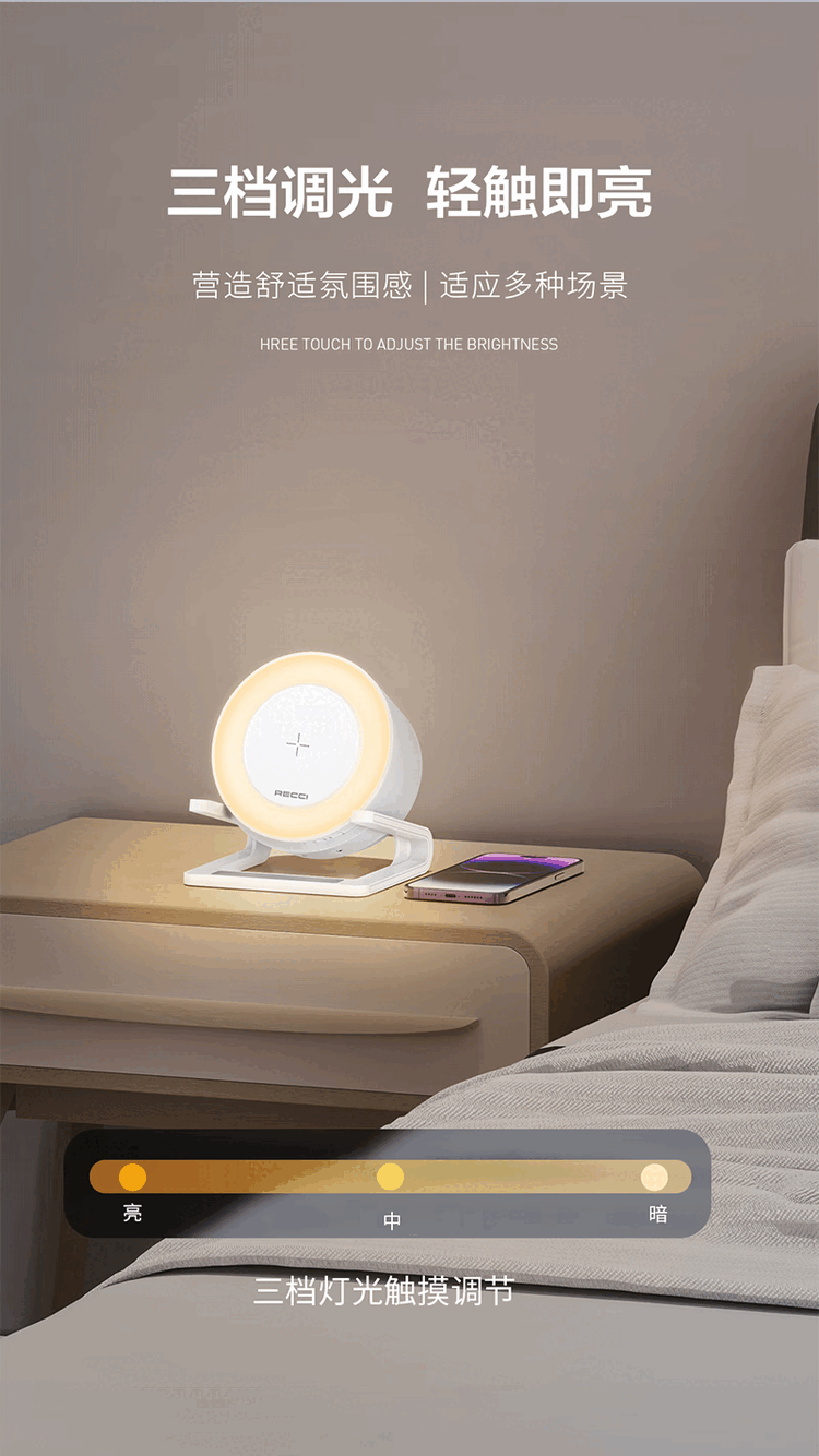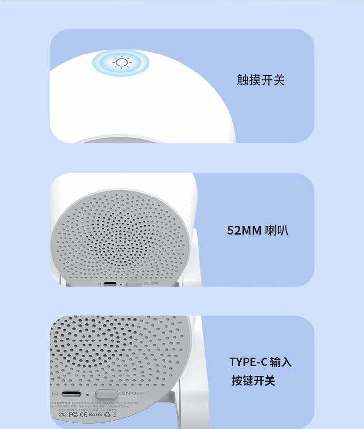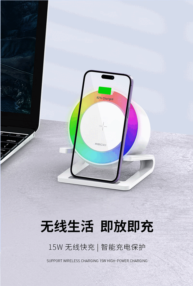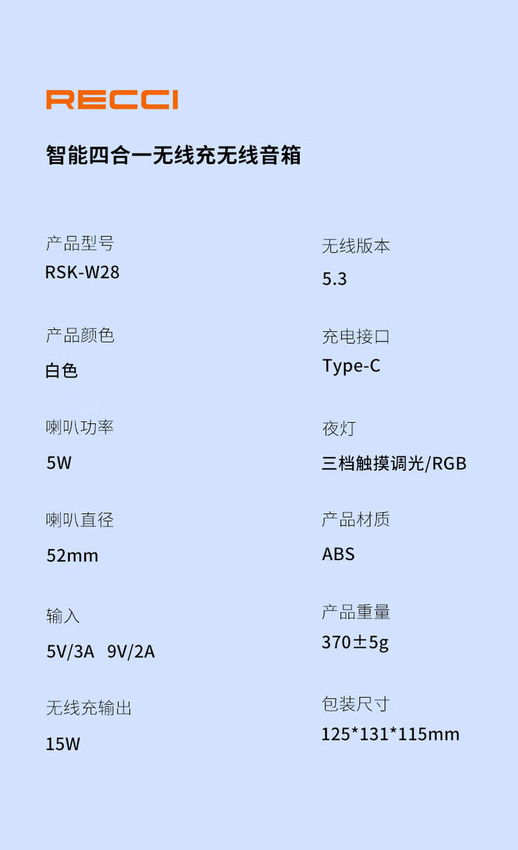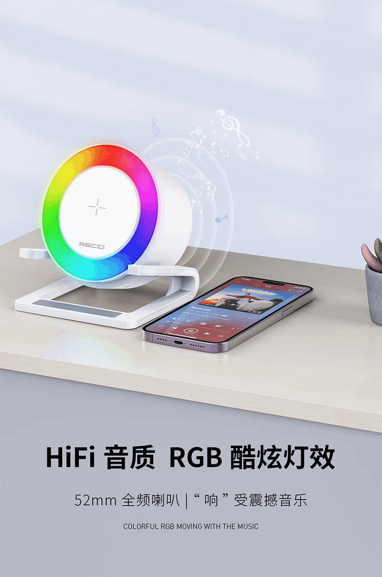 RECCI锐思 RSK-W28无线充电器氛围灯带蓝牙音响多彩RGB灯效 白色