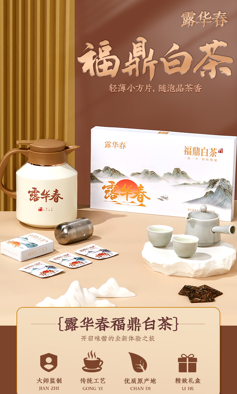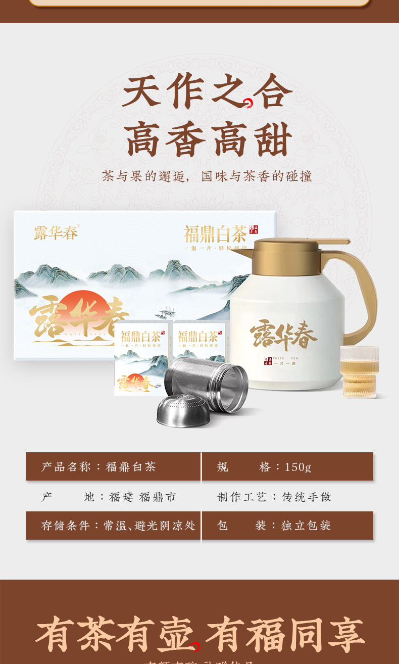 【自营】露华春茶叶礼盒 福鼎白茶150g+老白茶方片壶 送长辈客户送礼