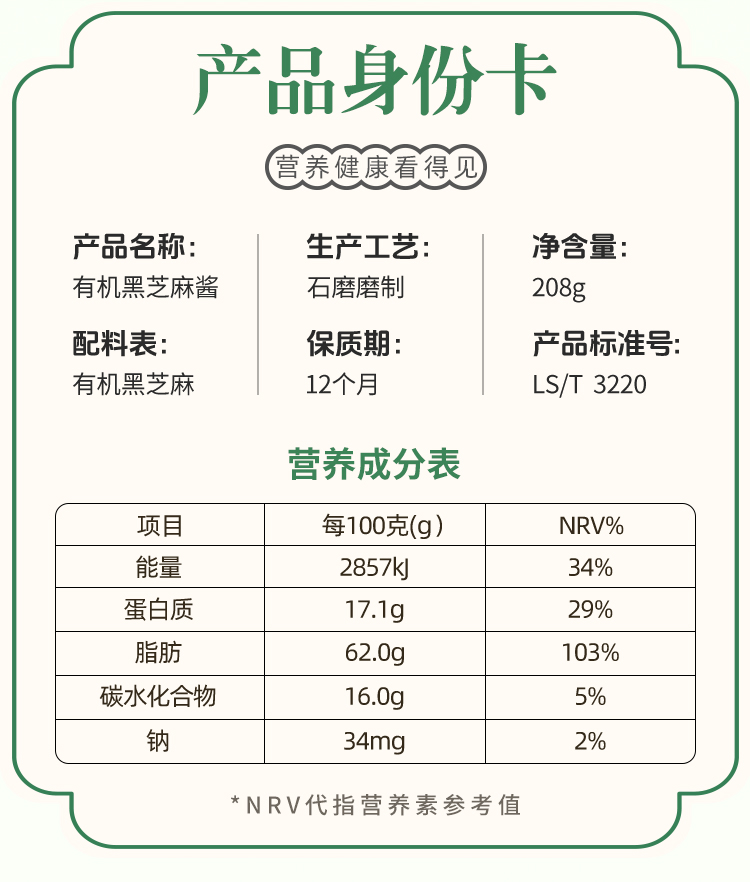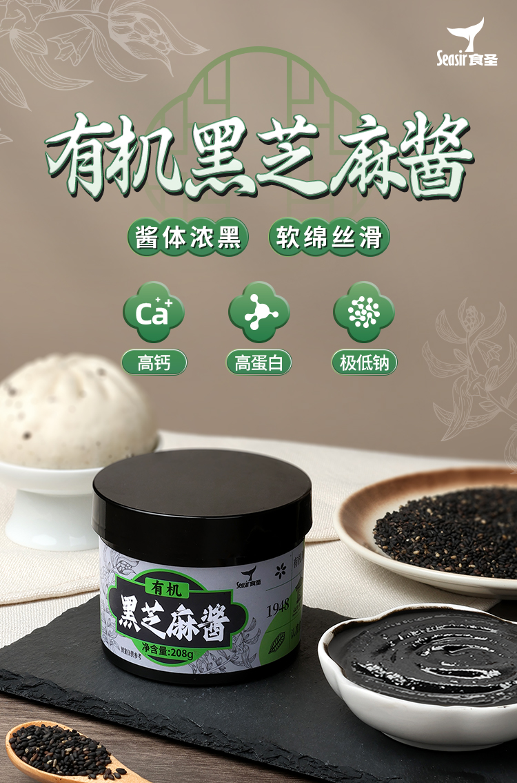 食圣有机黑芝麻酱208g 家用纯无糖精烘焙调味酱料拌面吐司面包酱
