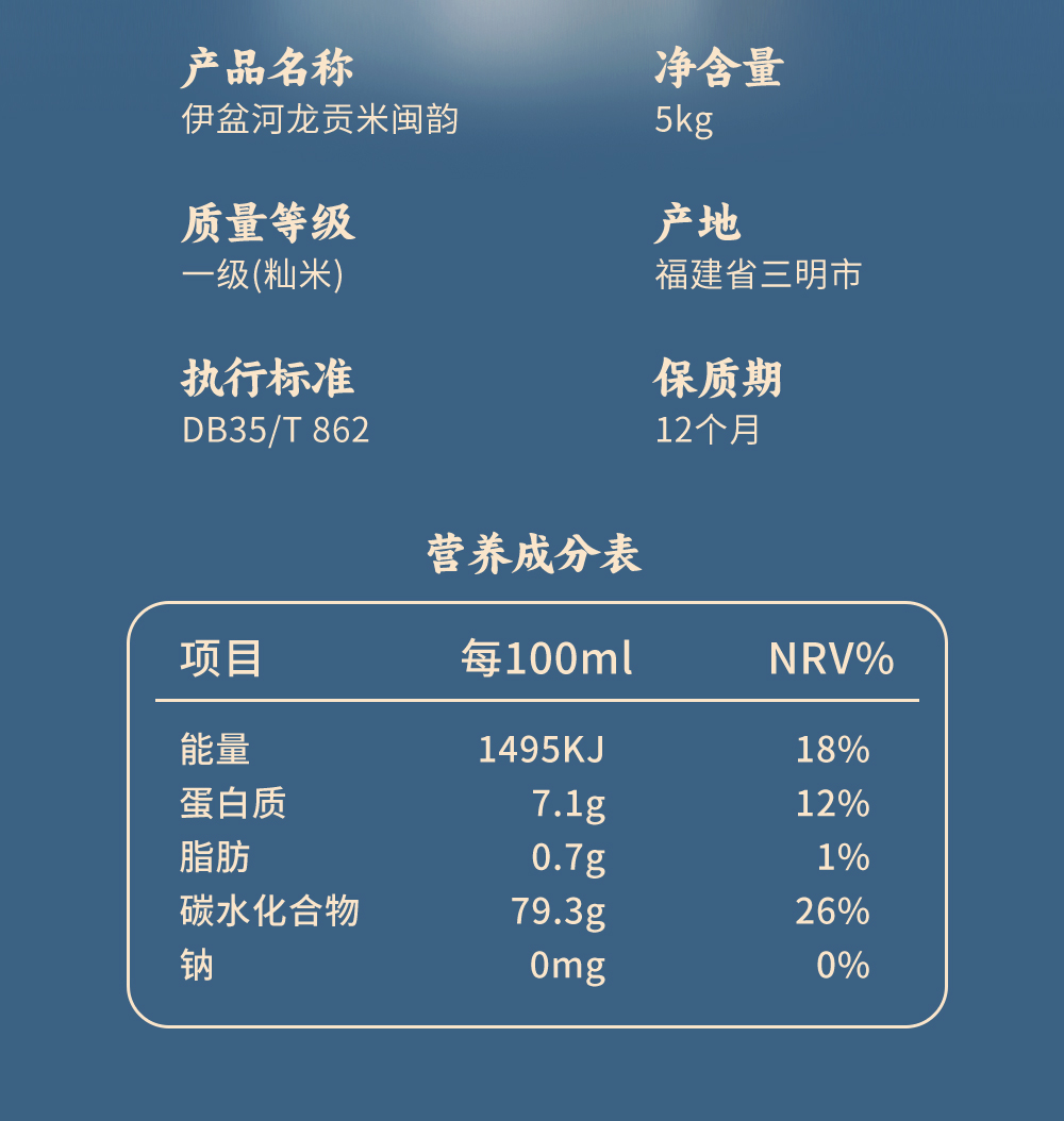 臻米闽韵5kg 伊盆河龙贡米 【臻选好物】