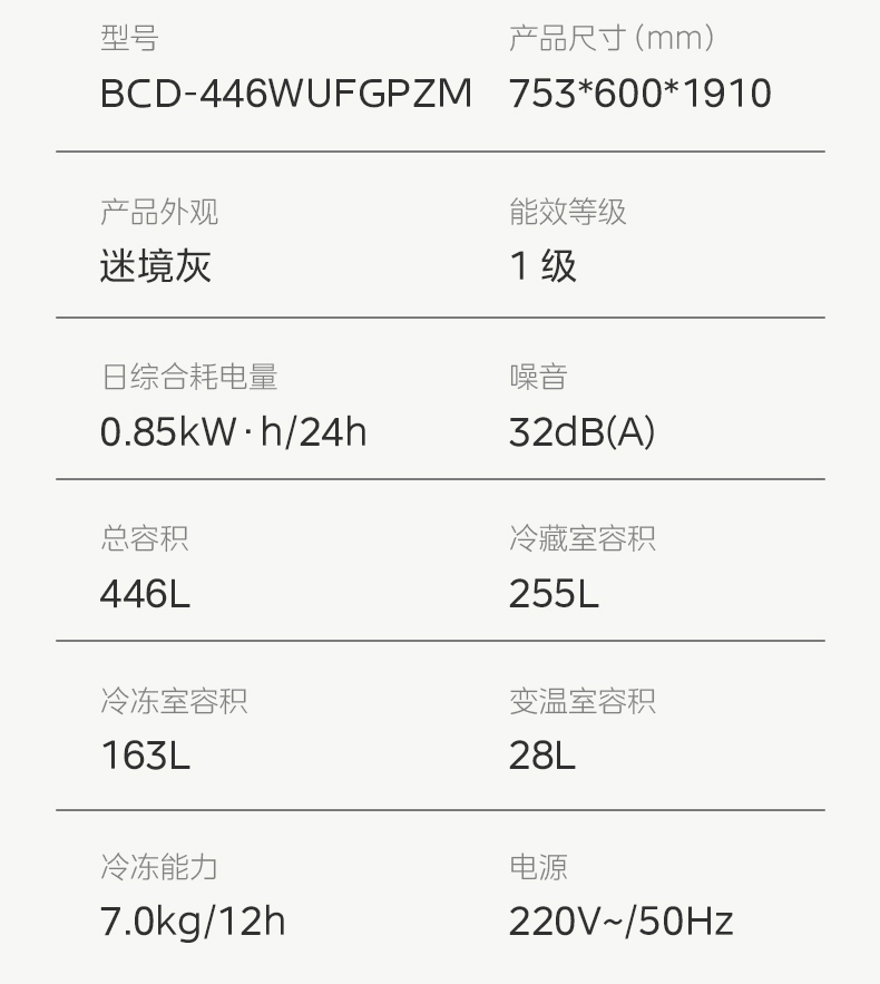 美的 冰箱 BCD-446WUFGPZM 迷境灰