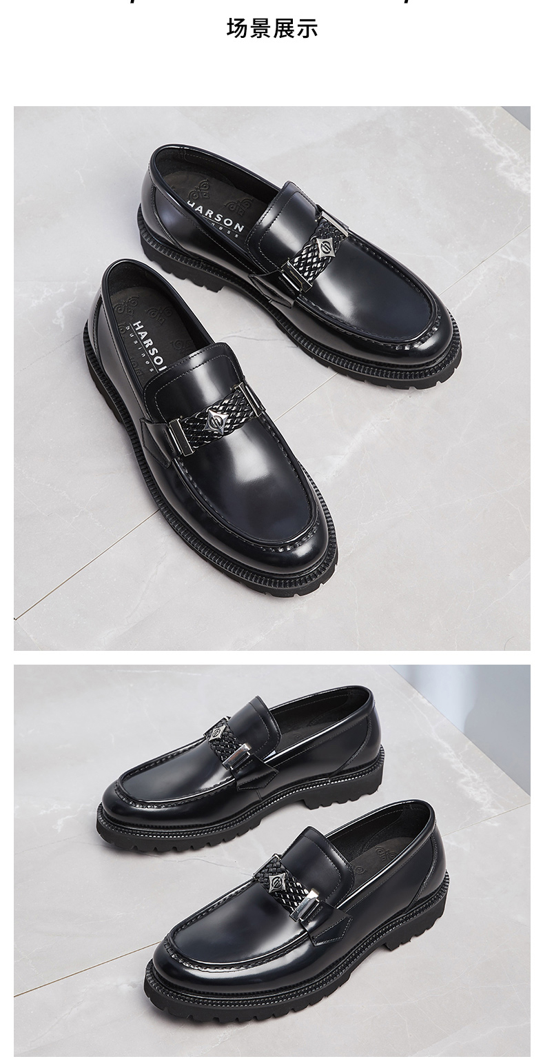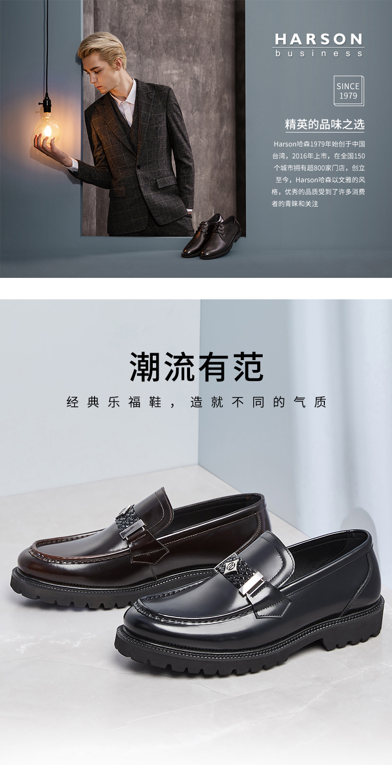 哈森男鞋春季品牌高档男士皮鞋一脚蹬商务休闲皮鞋MS28102