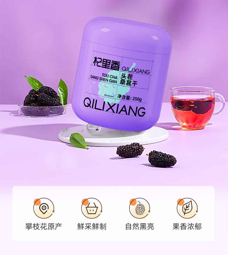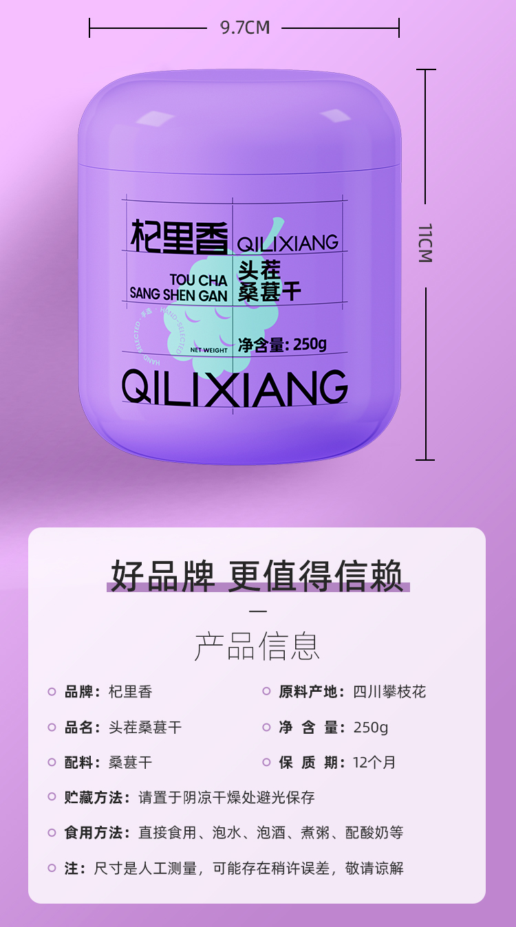 【杞里香手选黑桑葚干250g*2罐】原果烘干 果大饱满 醇香浓郁 自然清甜 泡茶水泡酒 可搭配玫瑰枸杞红枣 非免洗即食桑葚