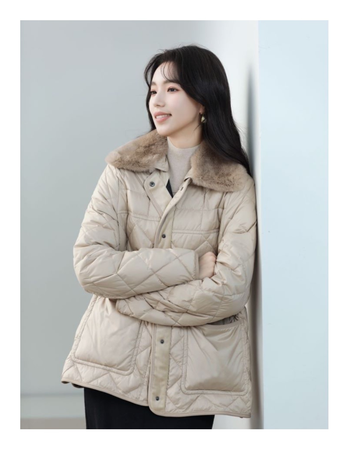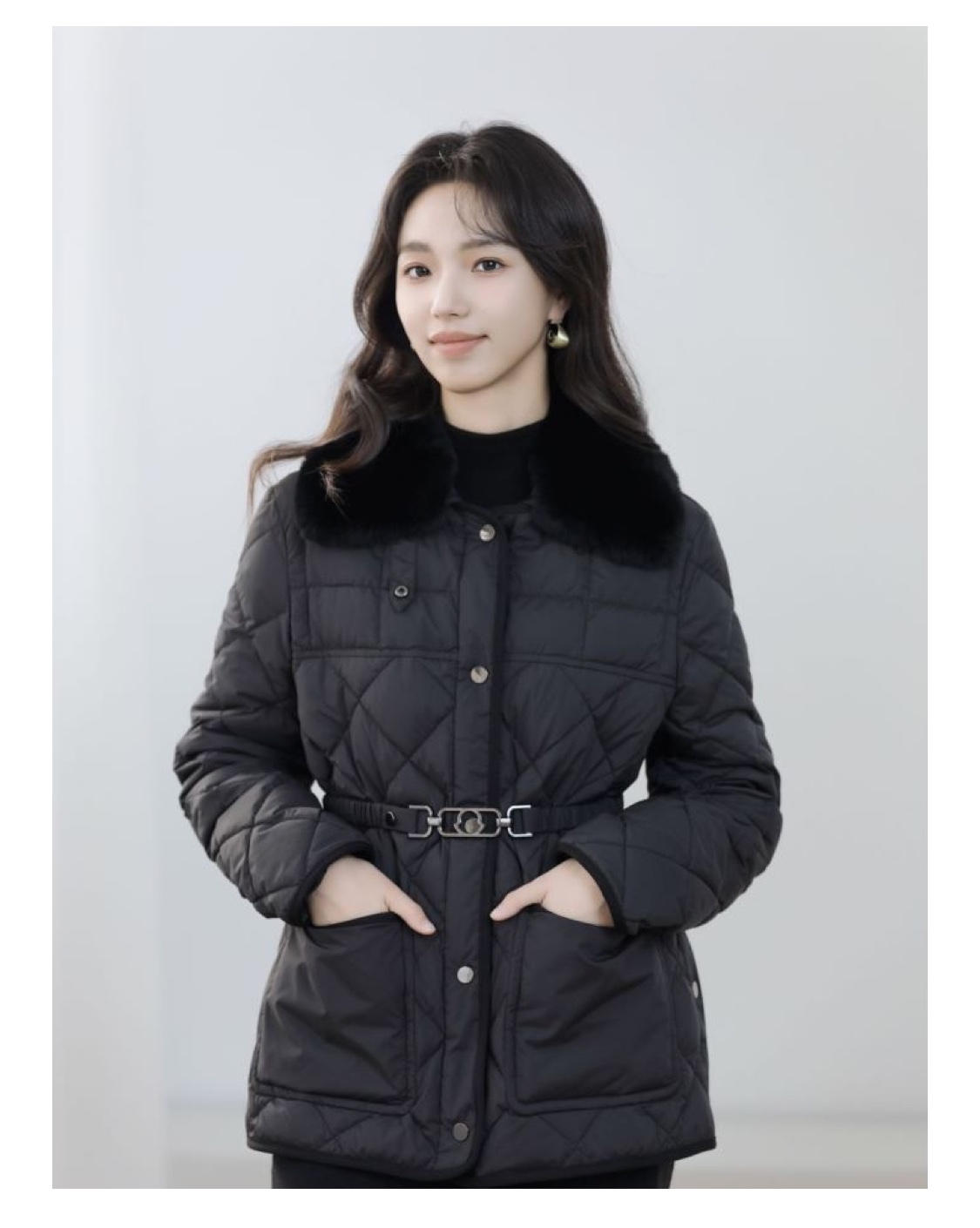 火桐hooton 高定系列 真毛领短款腰带羽绒服WT9679