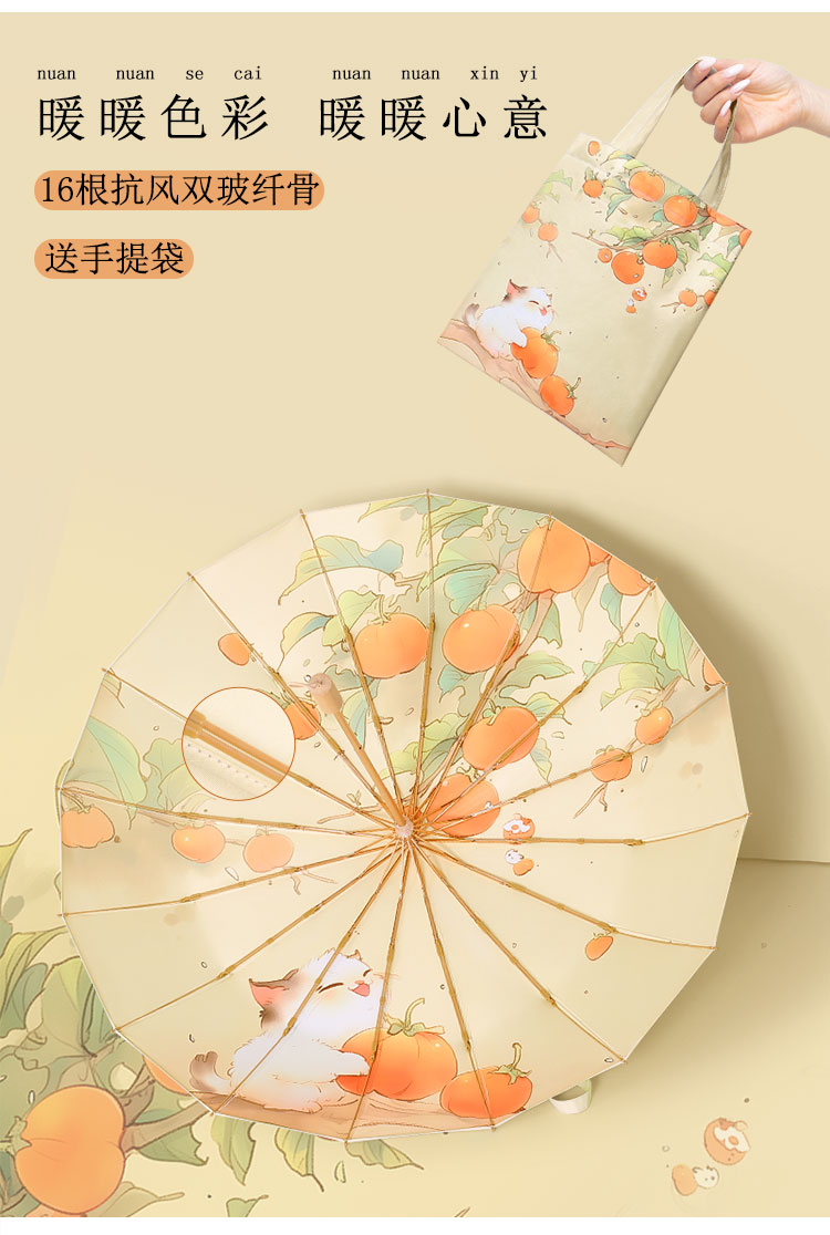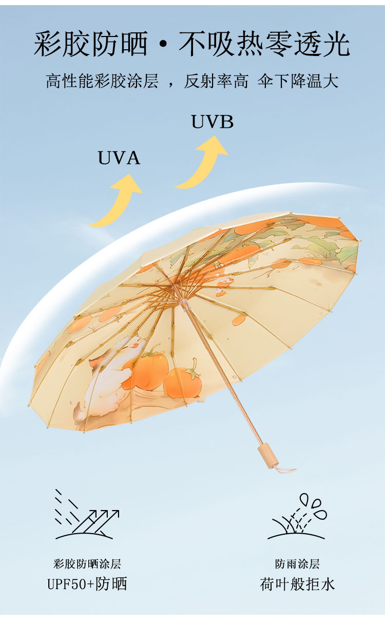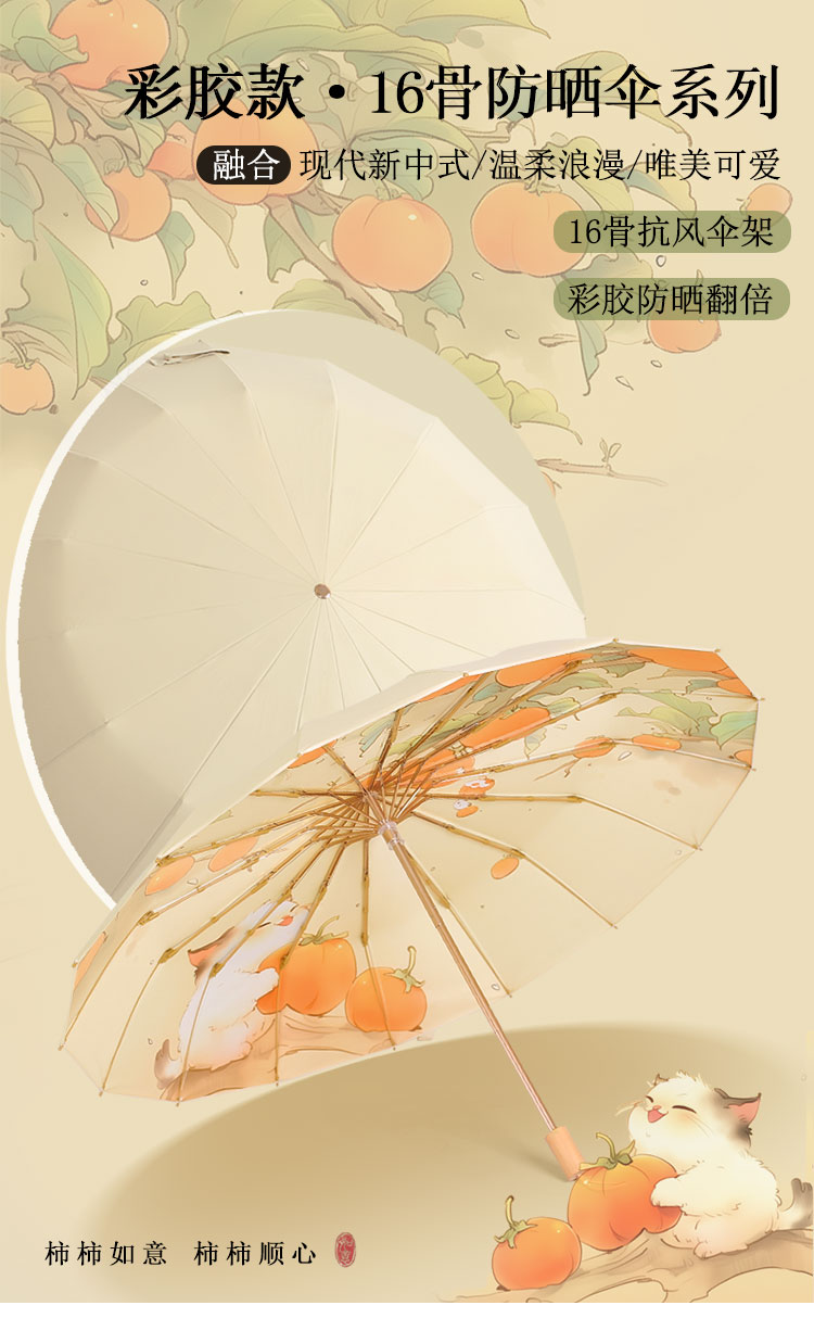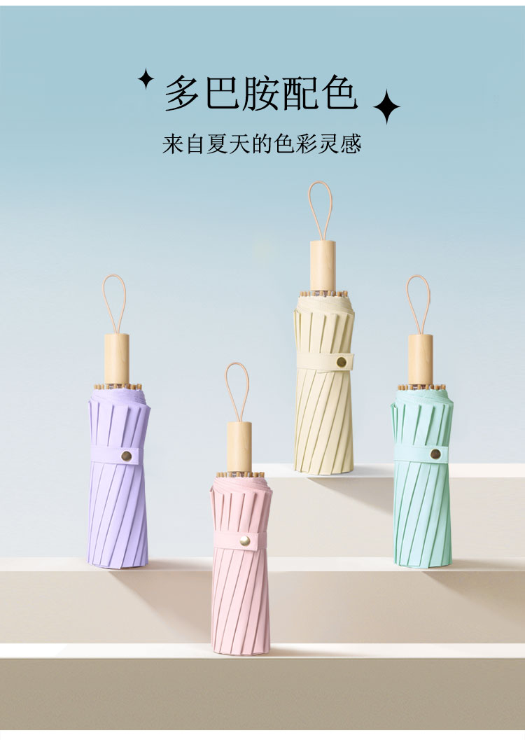 【送同色系手提袋】恒鼎 · 新中式16骨晴雨两用彩胶伞,12色可选,16骨支架,实木手柄,防雨扛风,夏日的诗意雨伞。