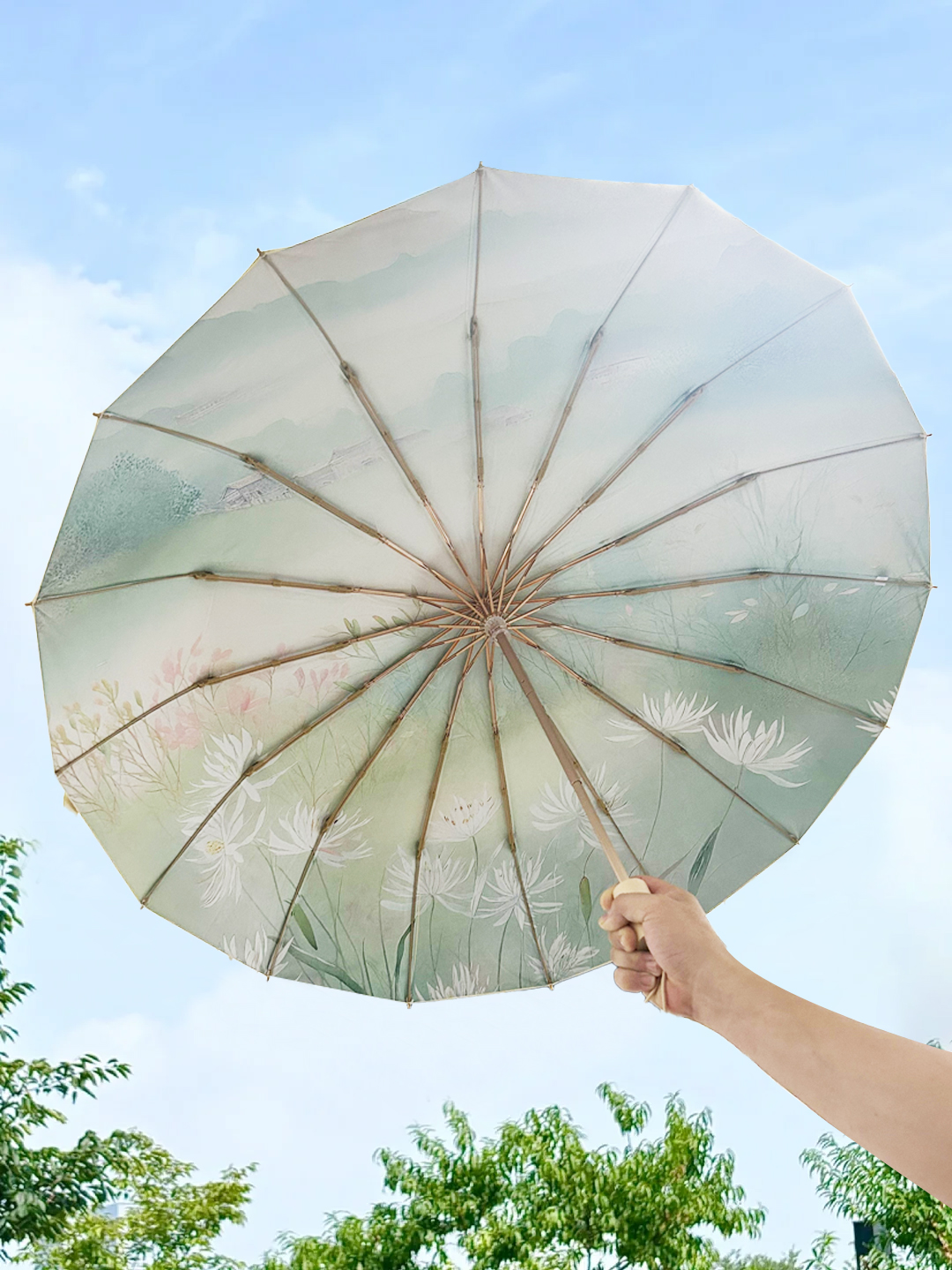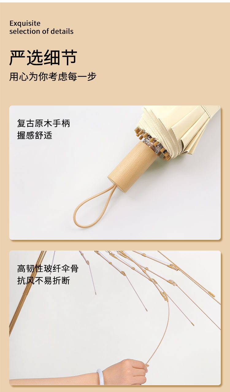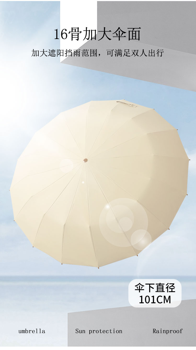 【送同色系手提袋】恒鼎 · 新中式16骨晴雨两用彩胶伞,12色可选,16骨支架,实木手柄,防雨扛风,夏日的诗意雨伞。