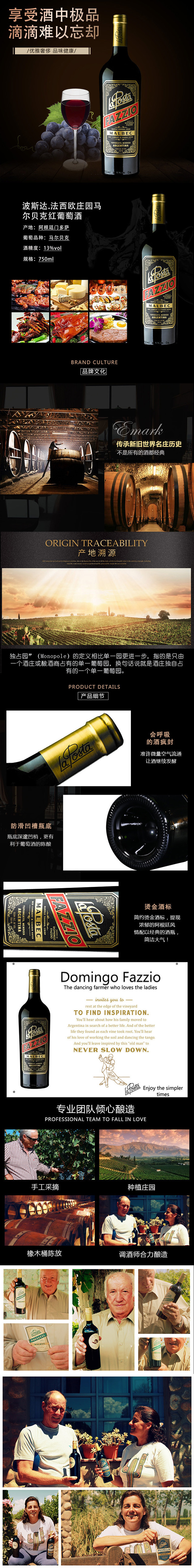 波斯达法西欧庄园马尔贝克红葡萄酒x750ML 阿根廷