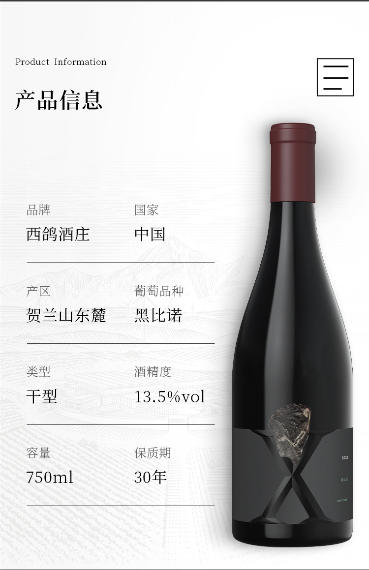 西鸽 | X黑比诺干红葡萄酒 750ml