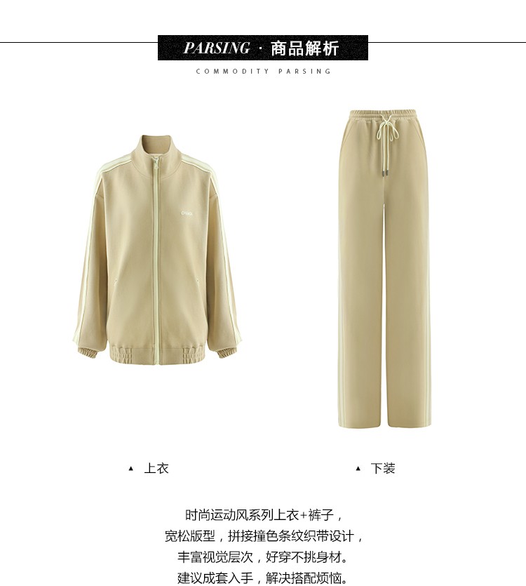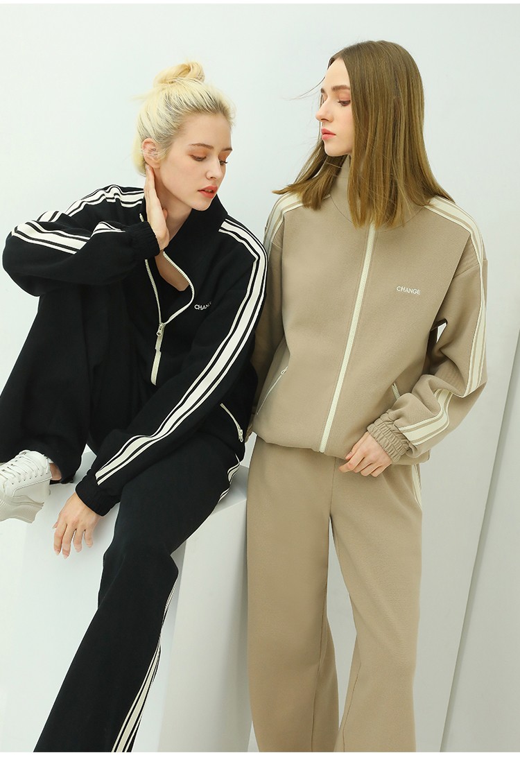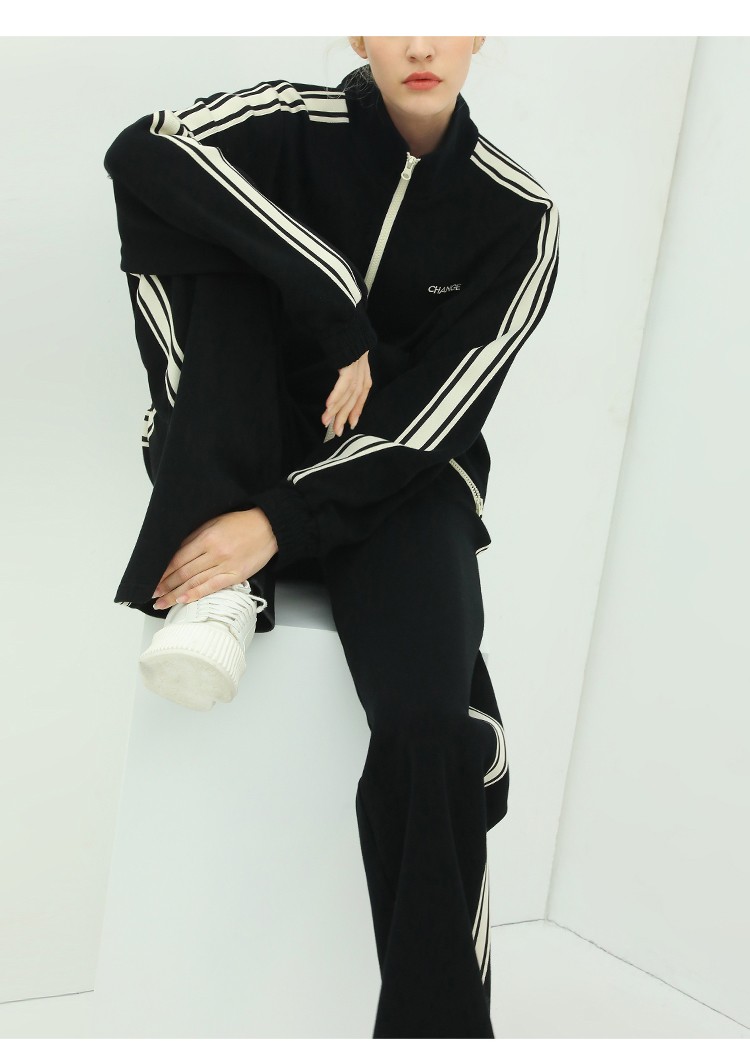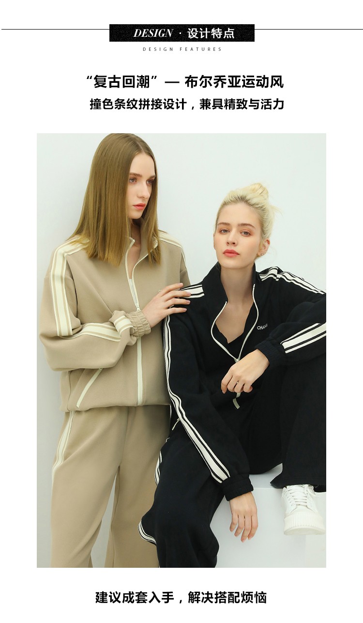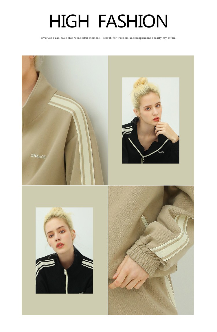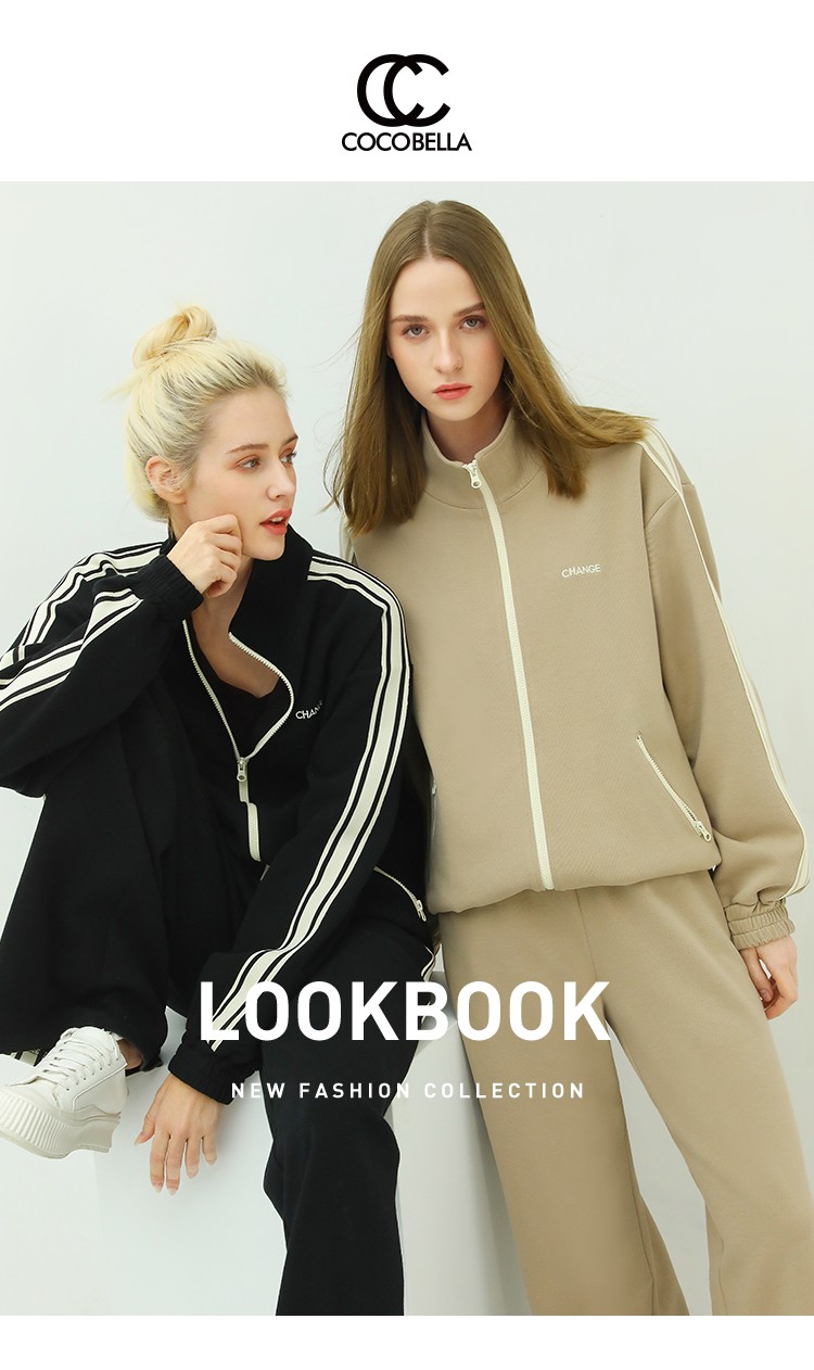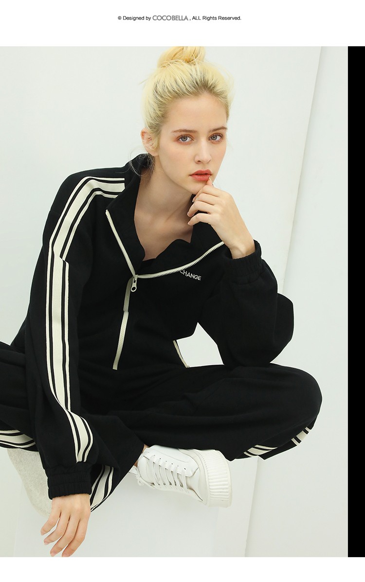 COCOBELLA时尚学院风字母刺绣外套女撞色条纹运动休闲上衣SC45