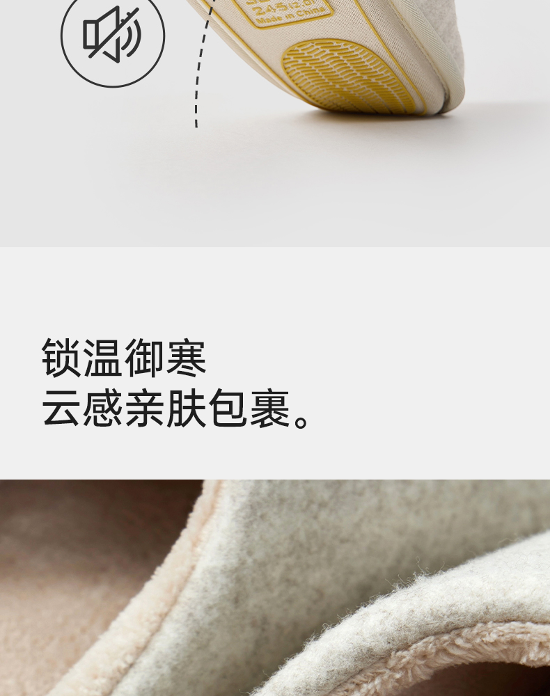 优调 静眠拖鞋 UDT1460 珊瑚绒内里 夹层高弹海绵 柔软亲肤,透气舒适不闷脚,触地无声,静音不伤地板