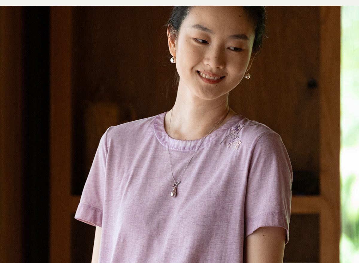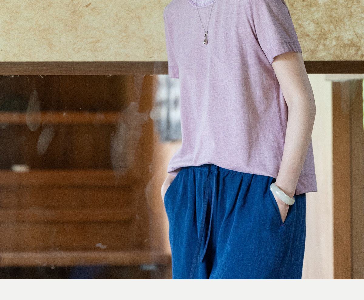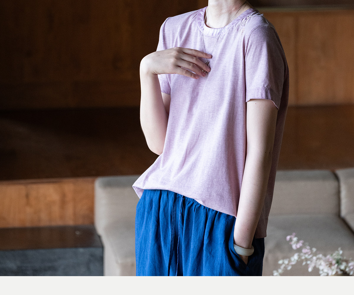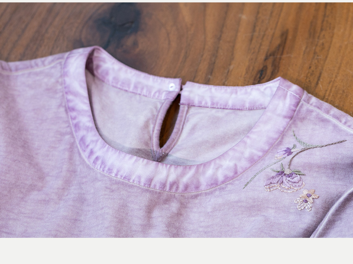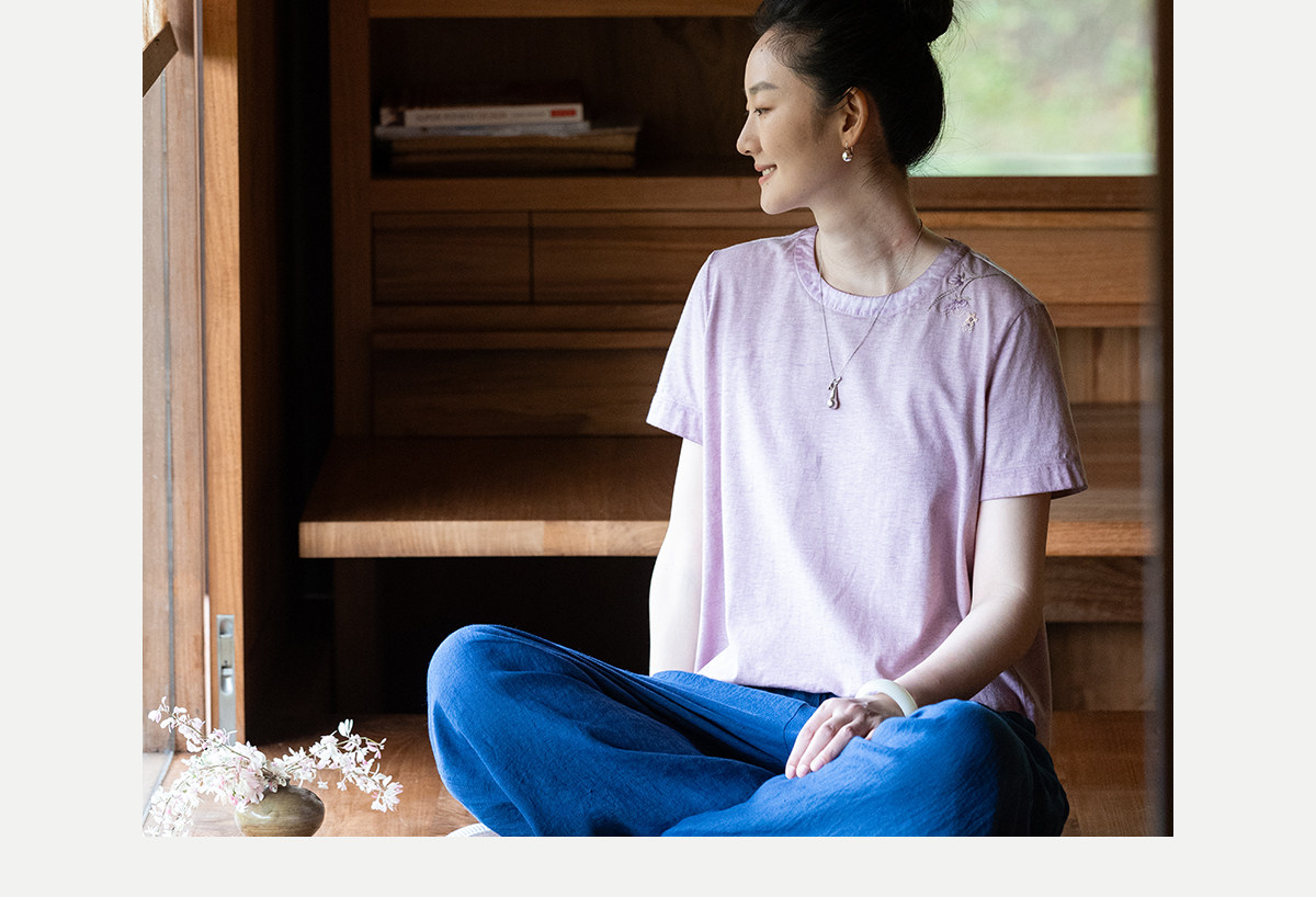 牧衣游原创 手工刺绣木棉纤维混纺T恤女炒色古朴宽松短袖 花千树