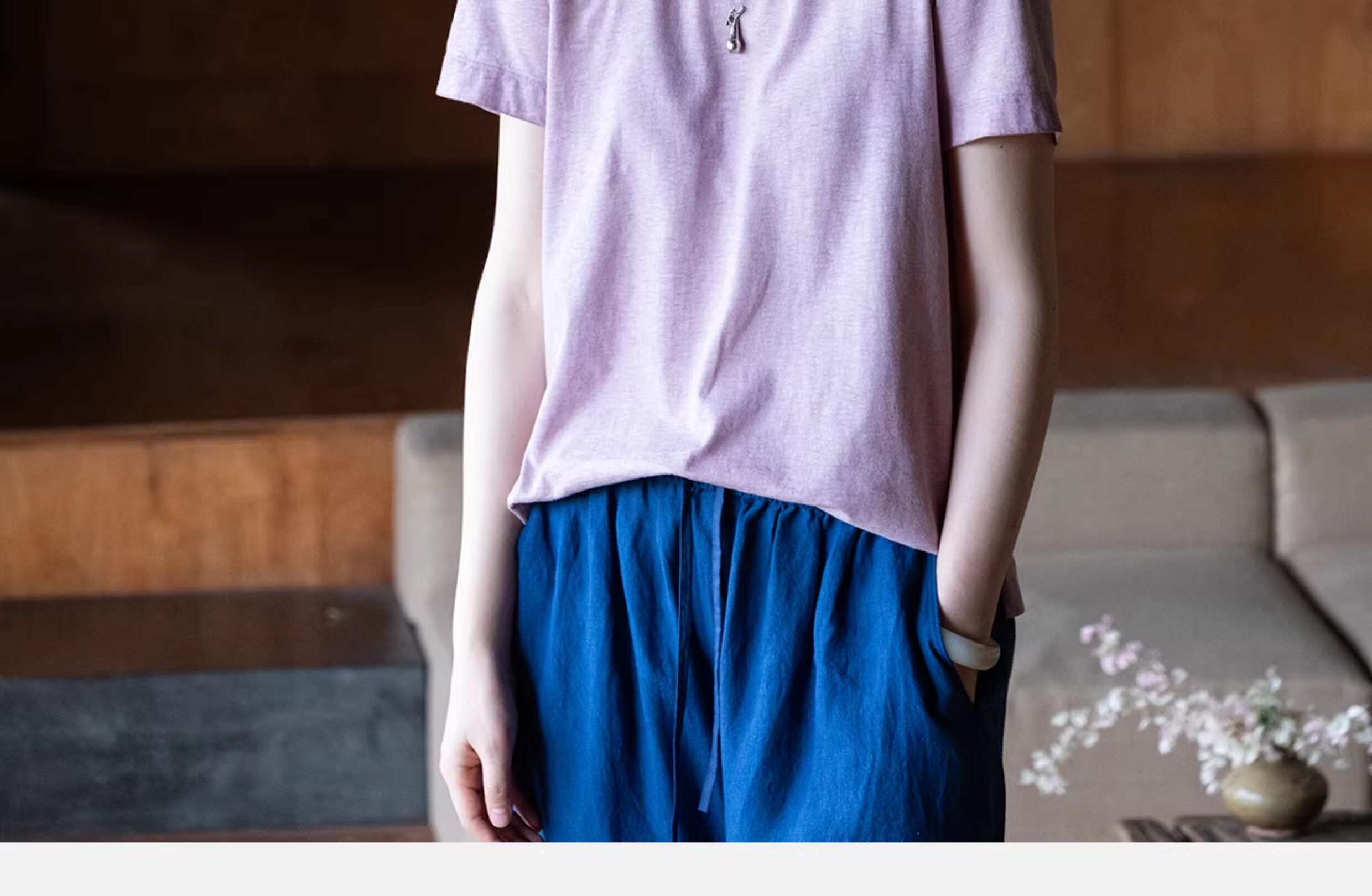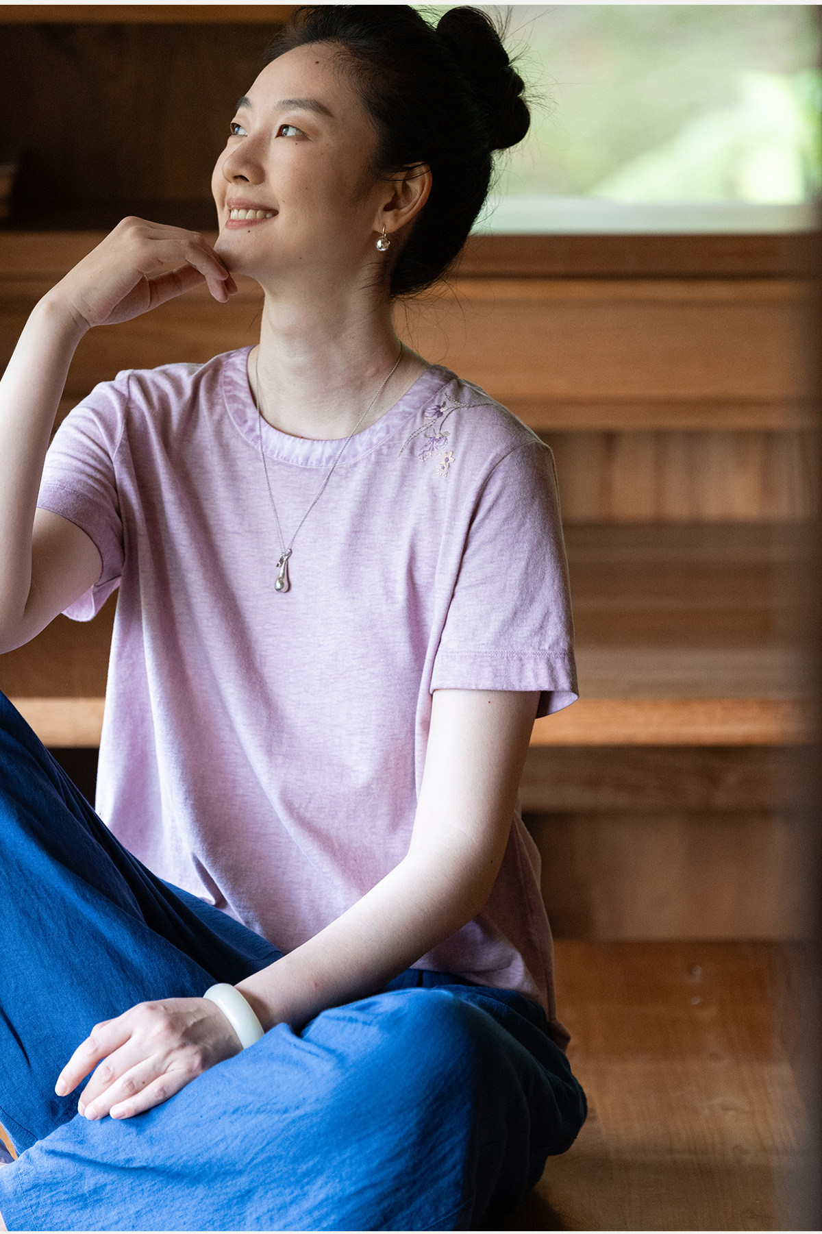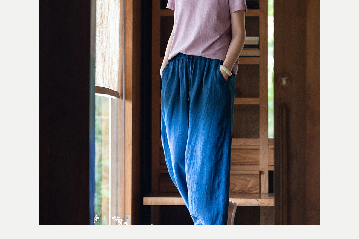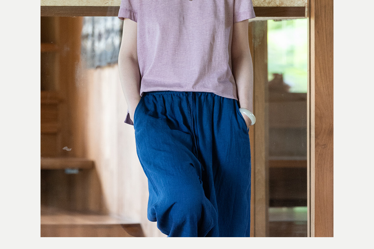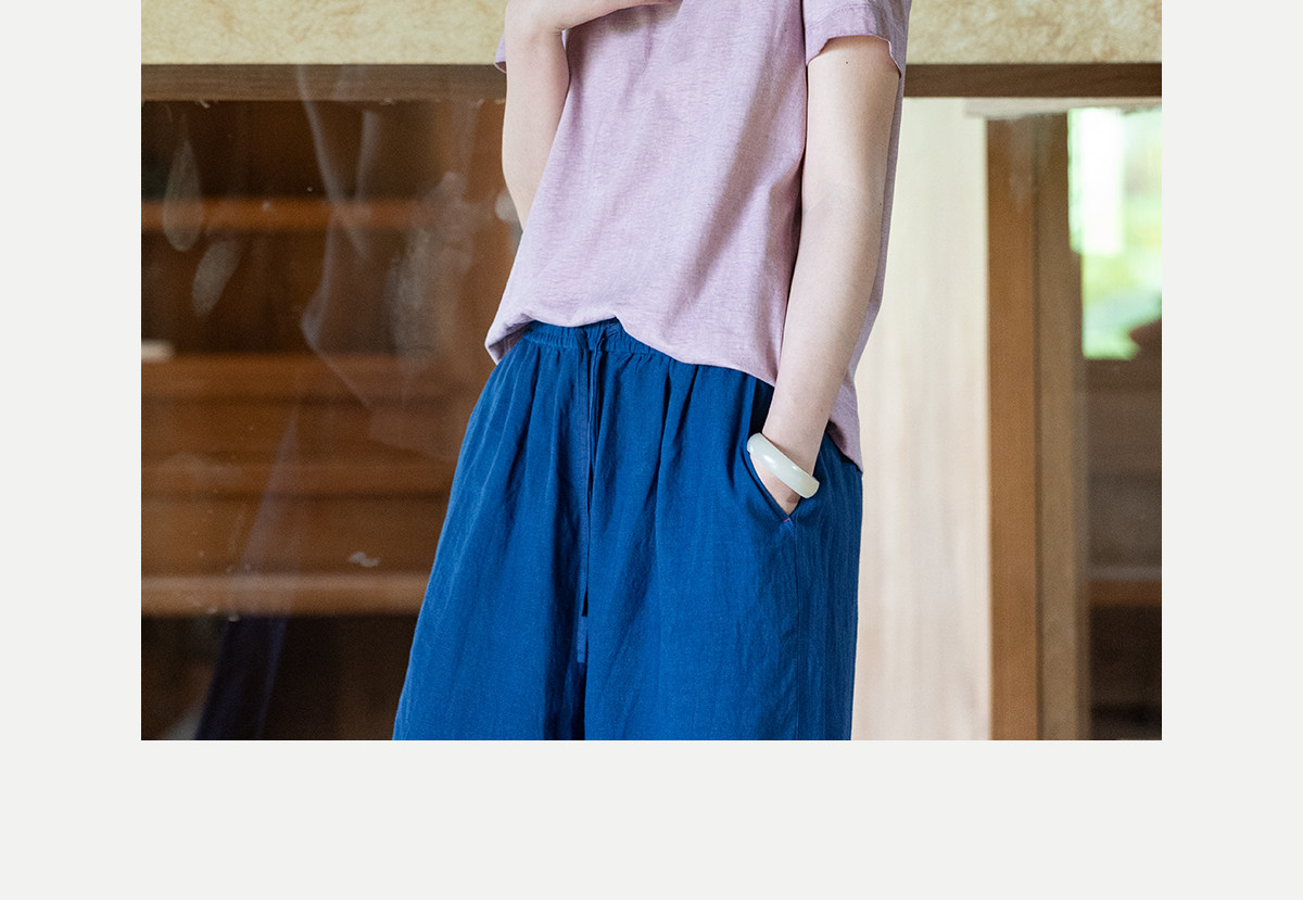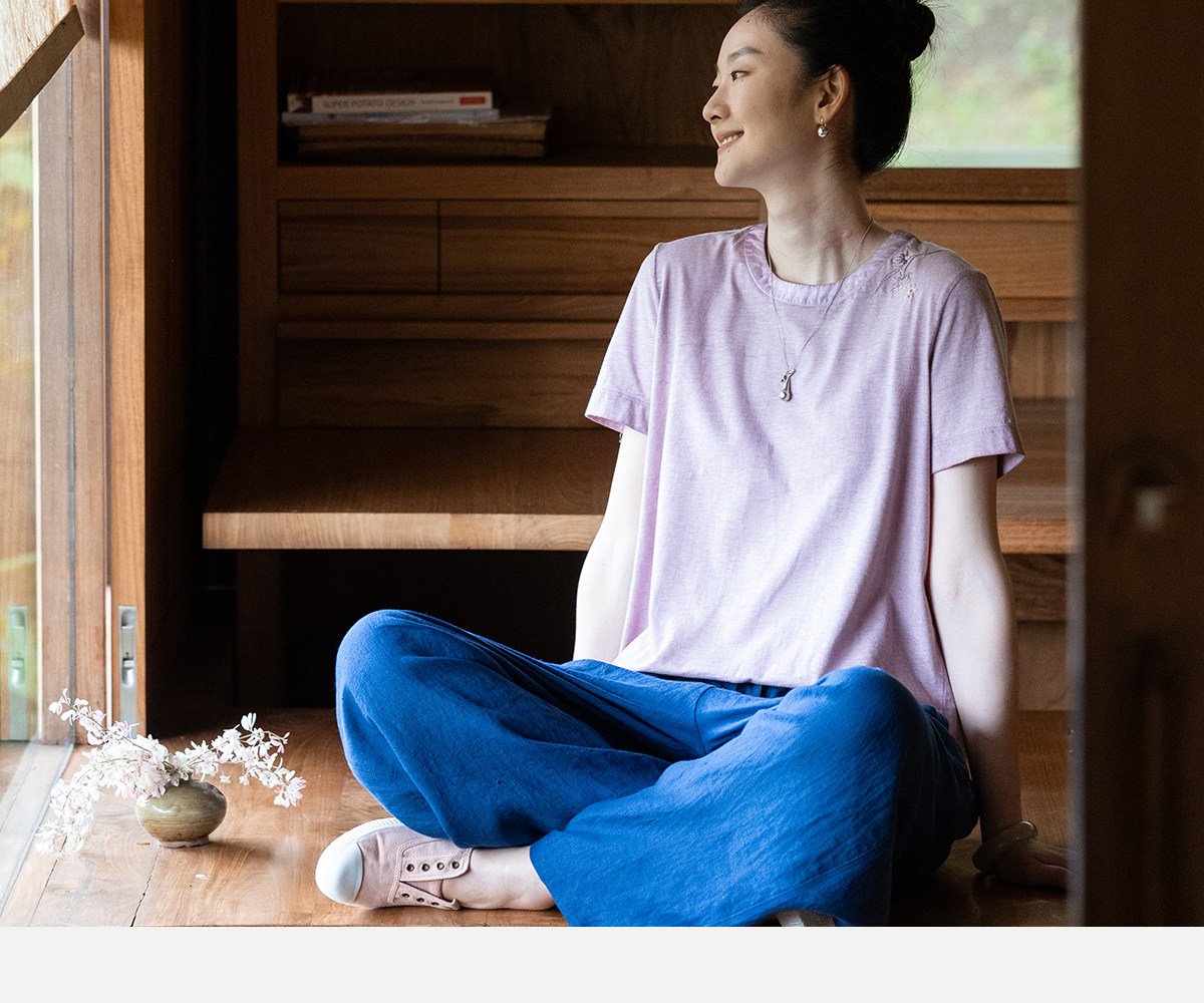 牧衣游原创 手工刺绣木棉纤维混纺T恤女炒色古朴宽松短袖 花千树