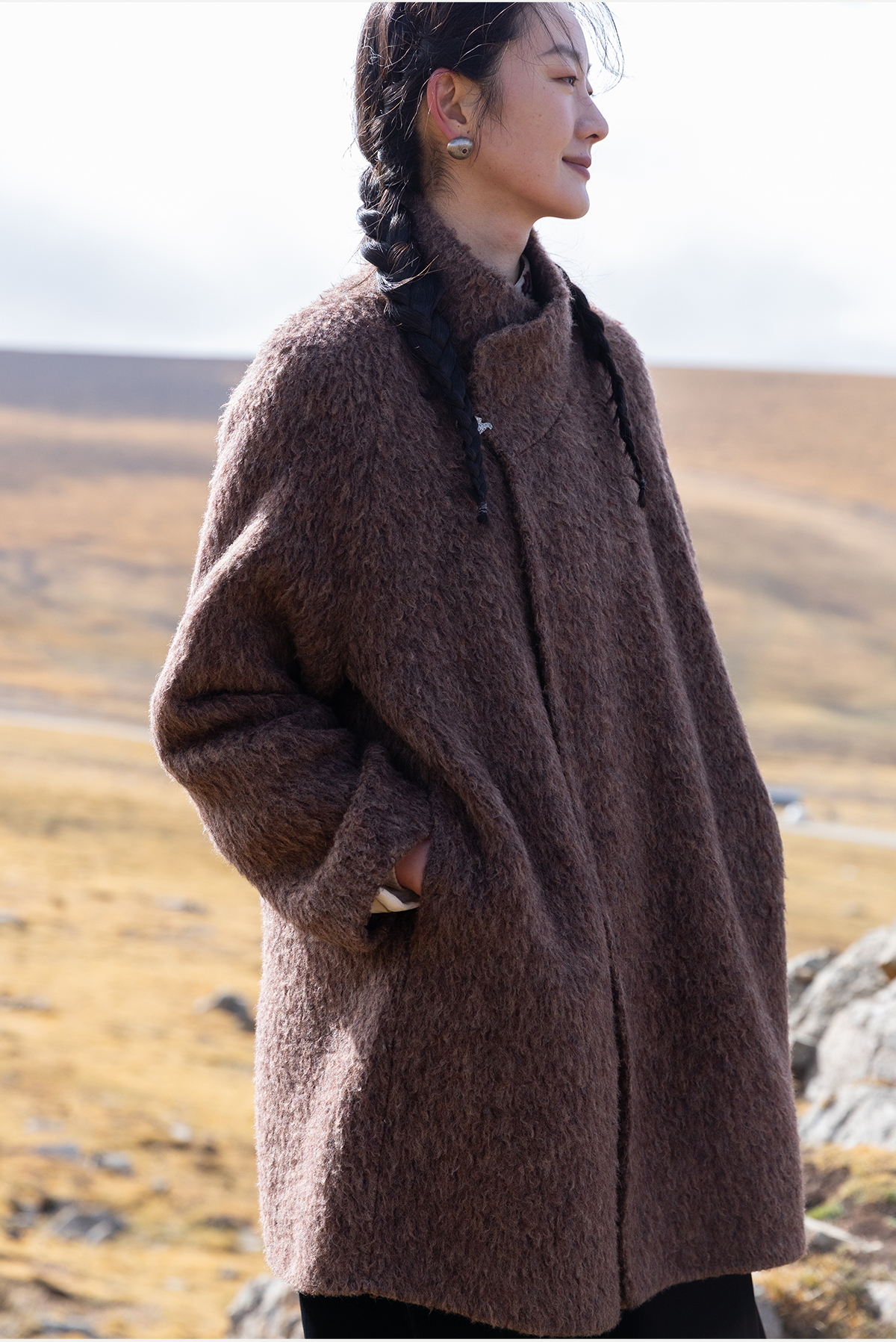 牧衣游原创 进口羊驼毛混纺羊羔毛外套蓬松保暖古朴毛呢外套 雨桐