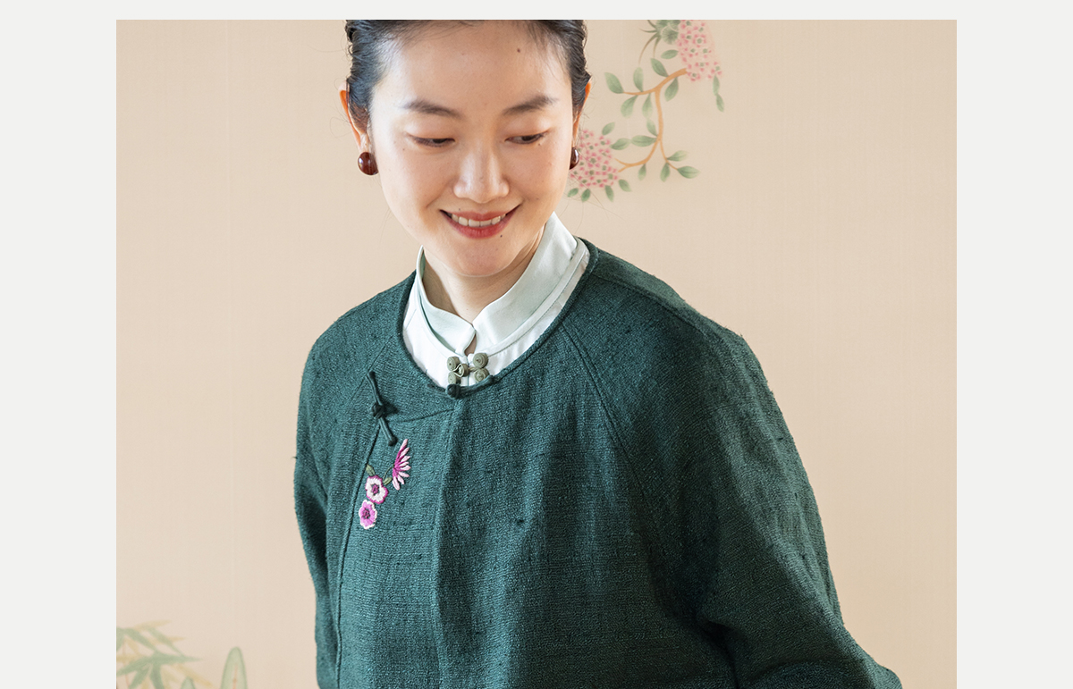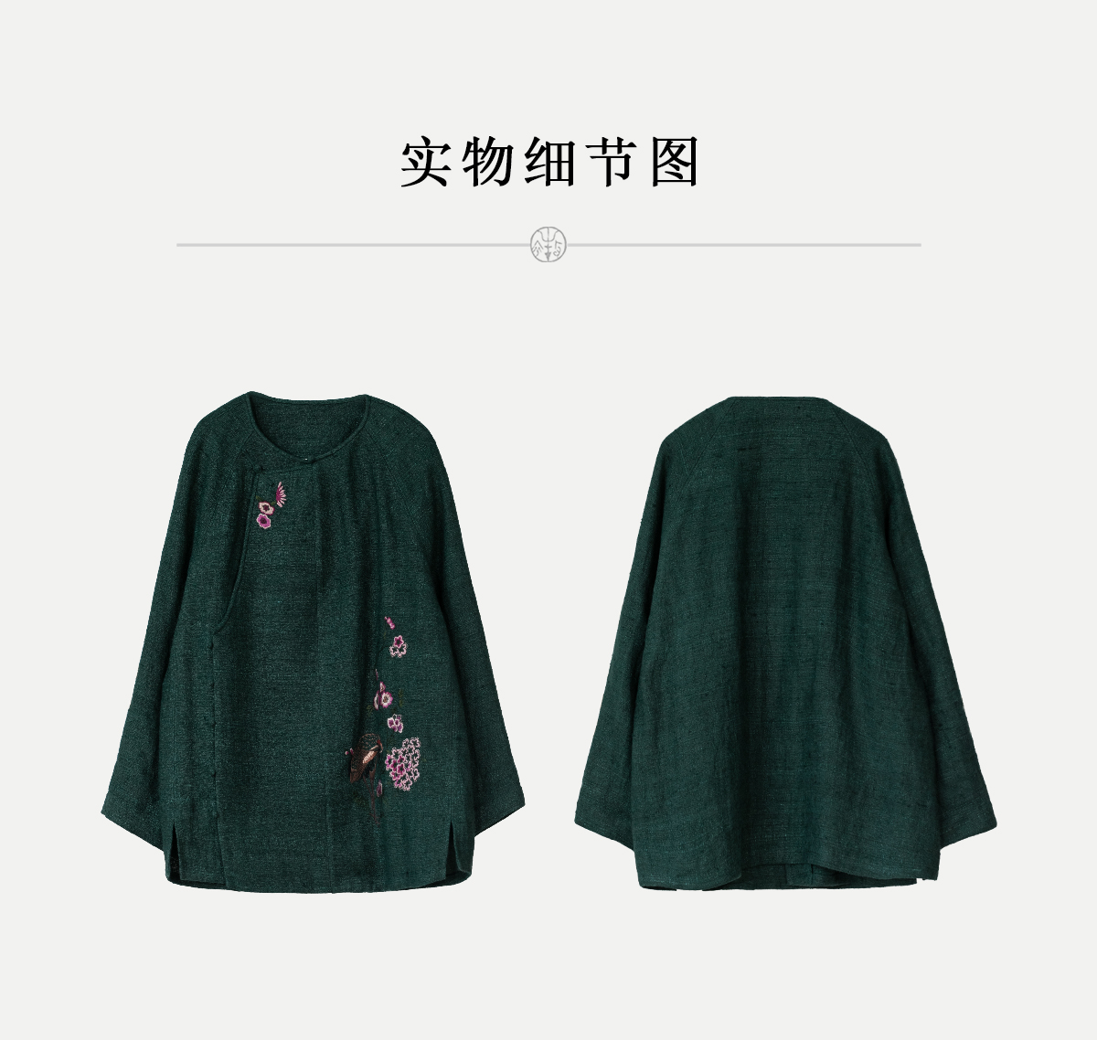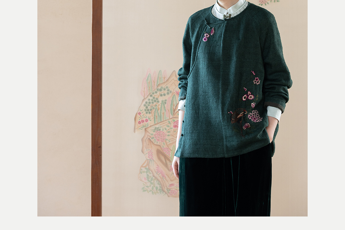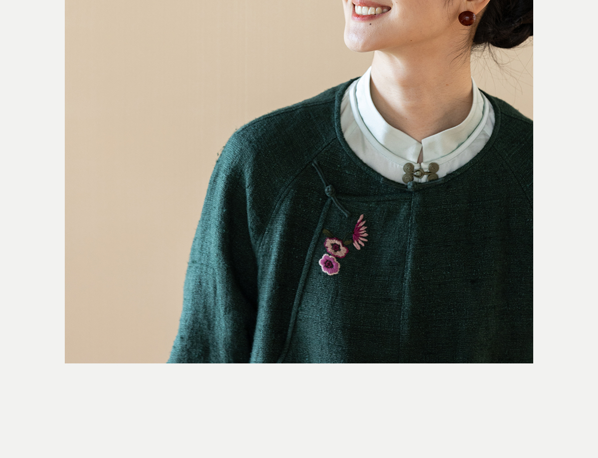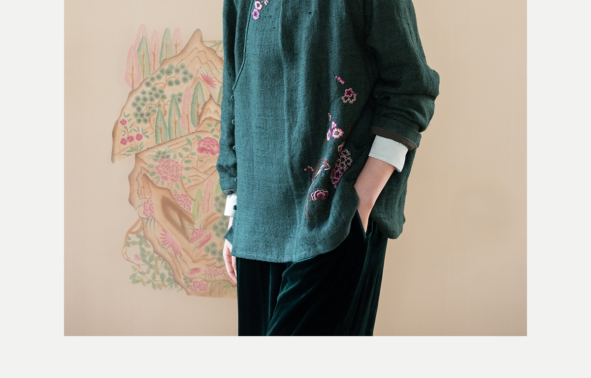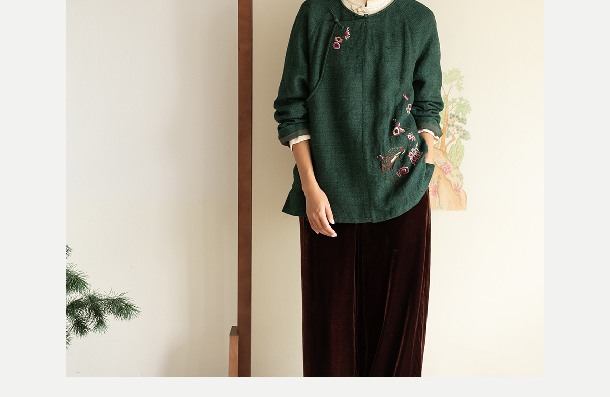牧衣游原创 柞蚕丝混亚麻手工刺绣短外套绿色文艺复古禅意 离毓