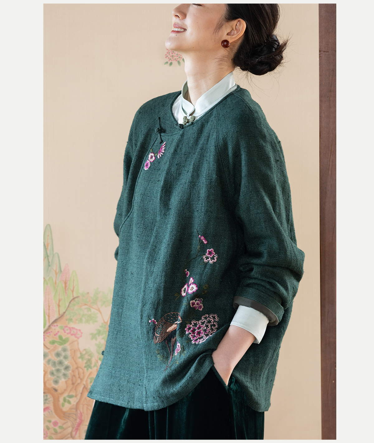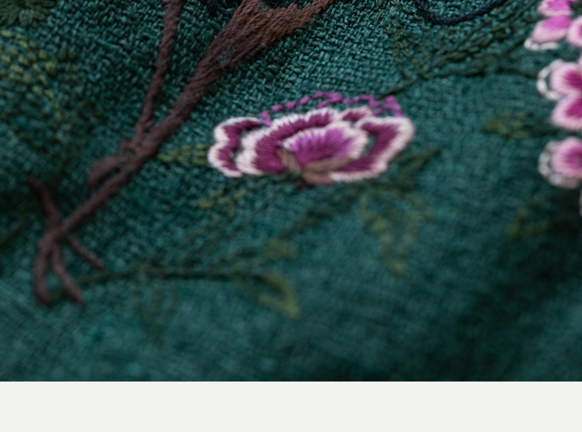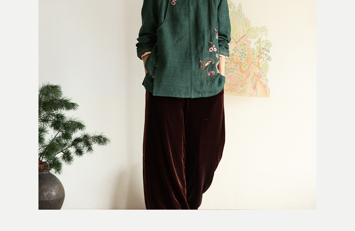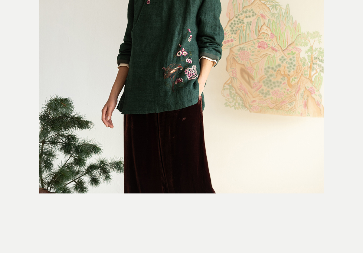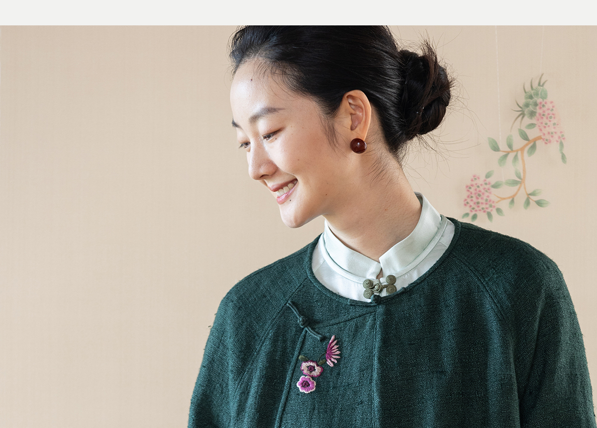 牧衣游原创 柞蚕丝混亚麻手工刺绣短外套绿色文艺复古禅意 离毓