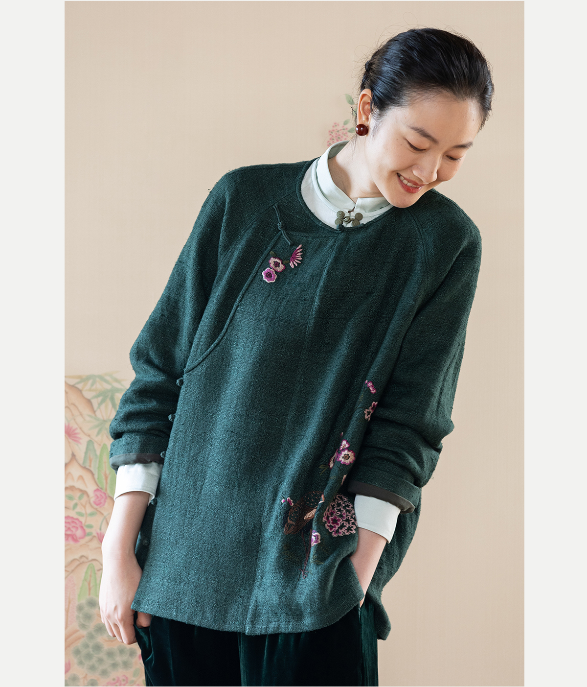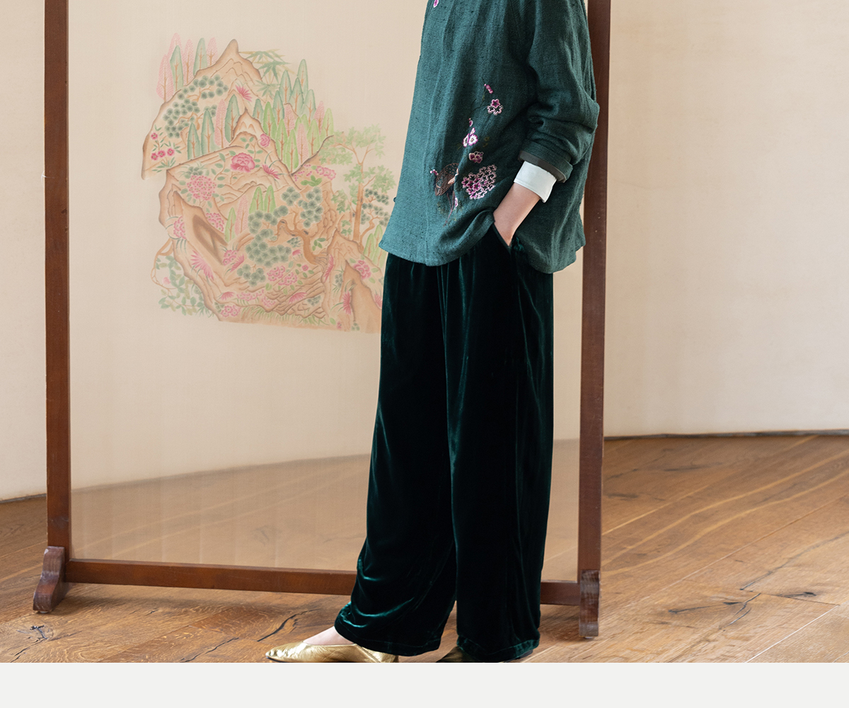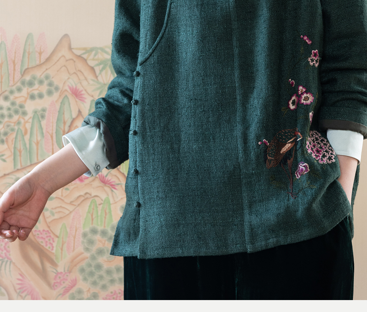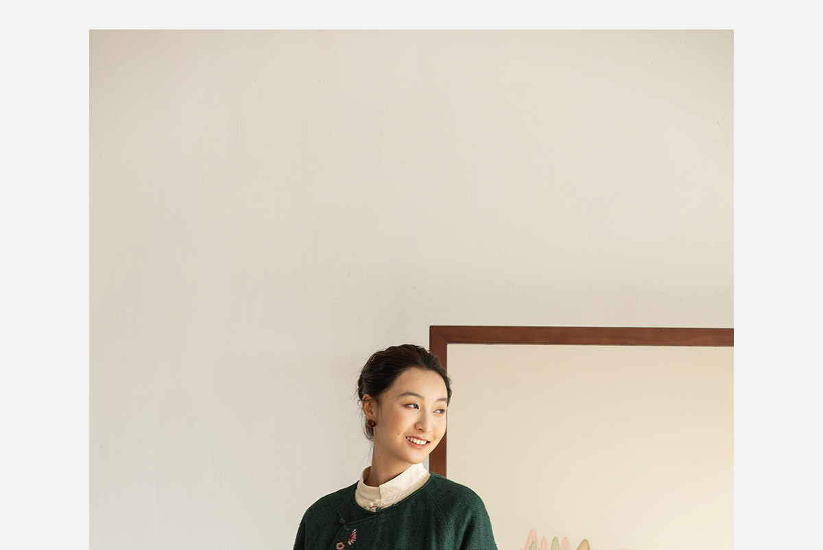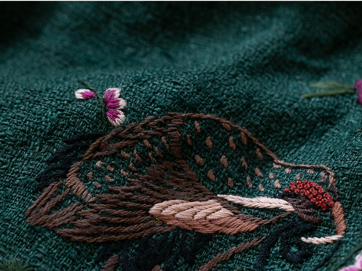 牧衣游原创 柞蚕丝混亚麻手工刺绣短外套绿色文艺复古禅意 离毓