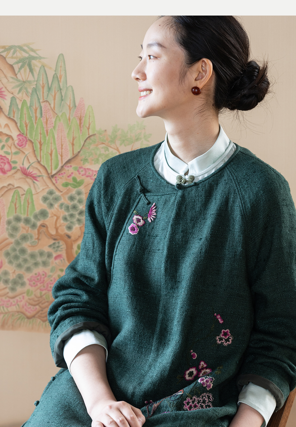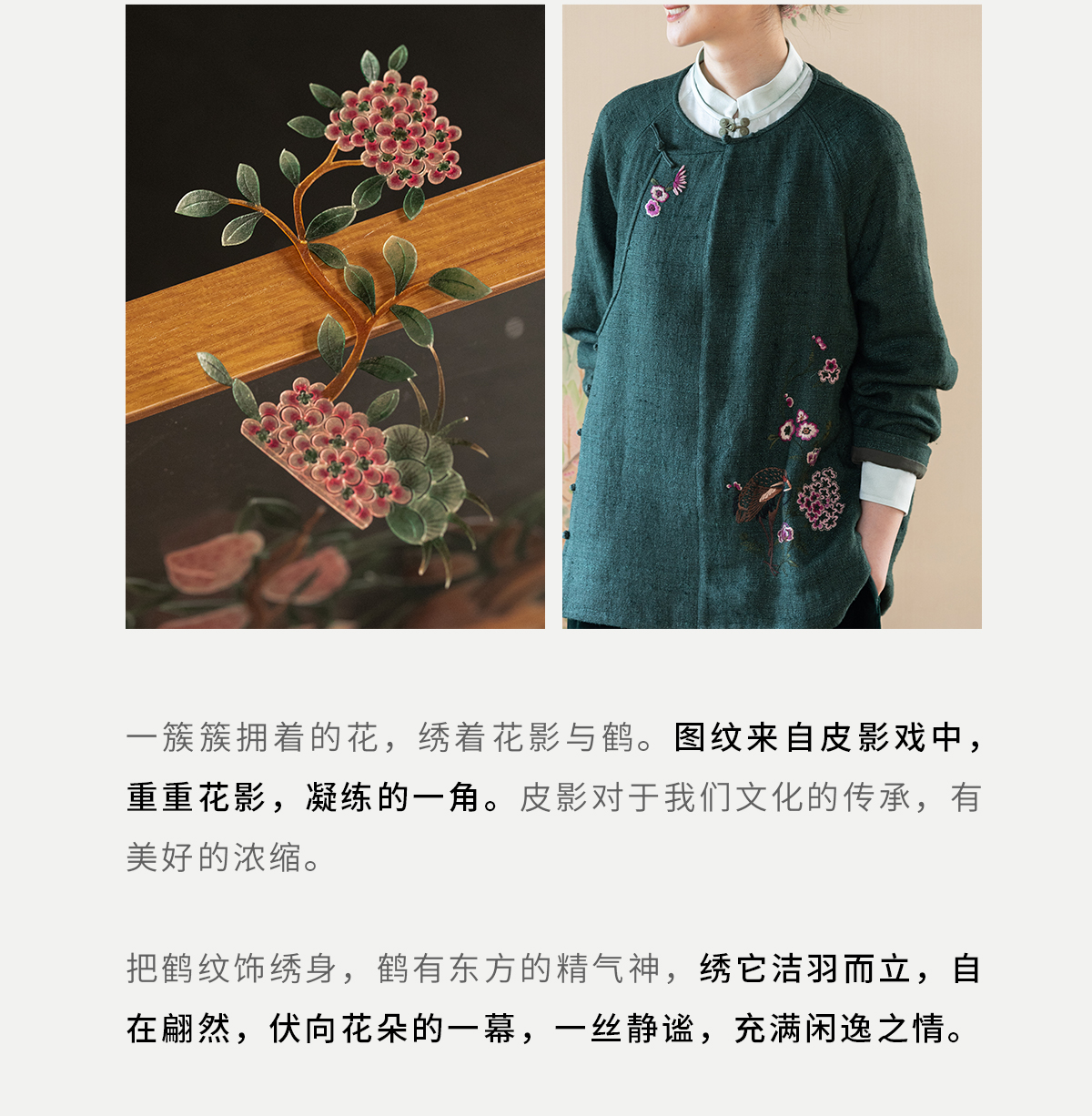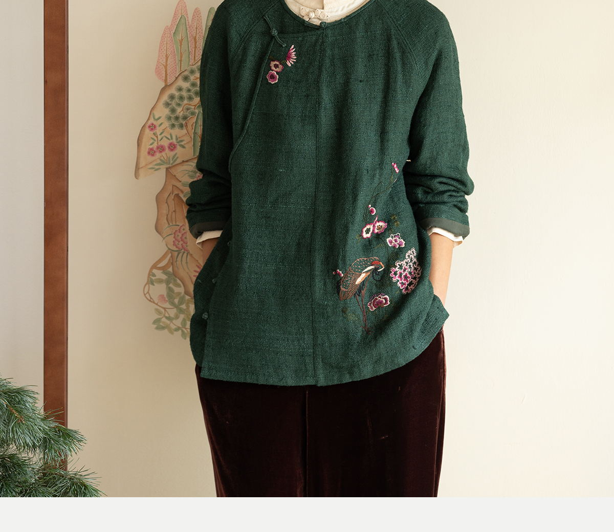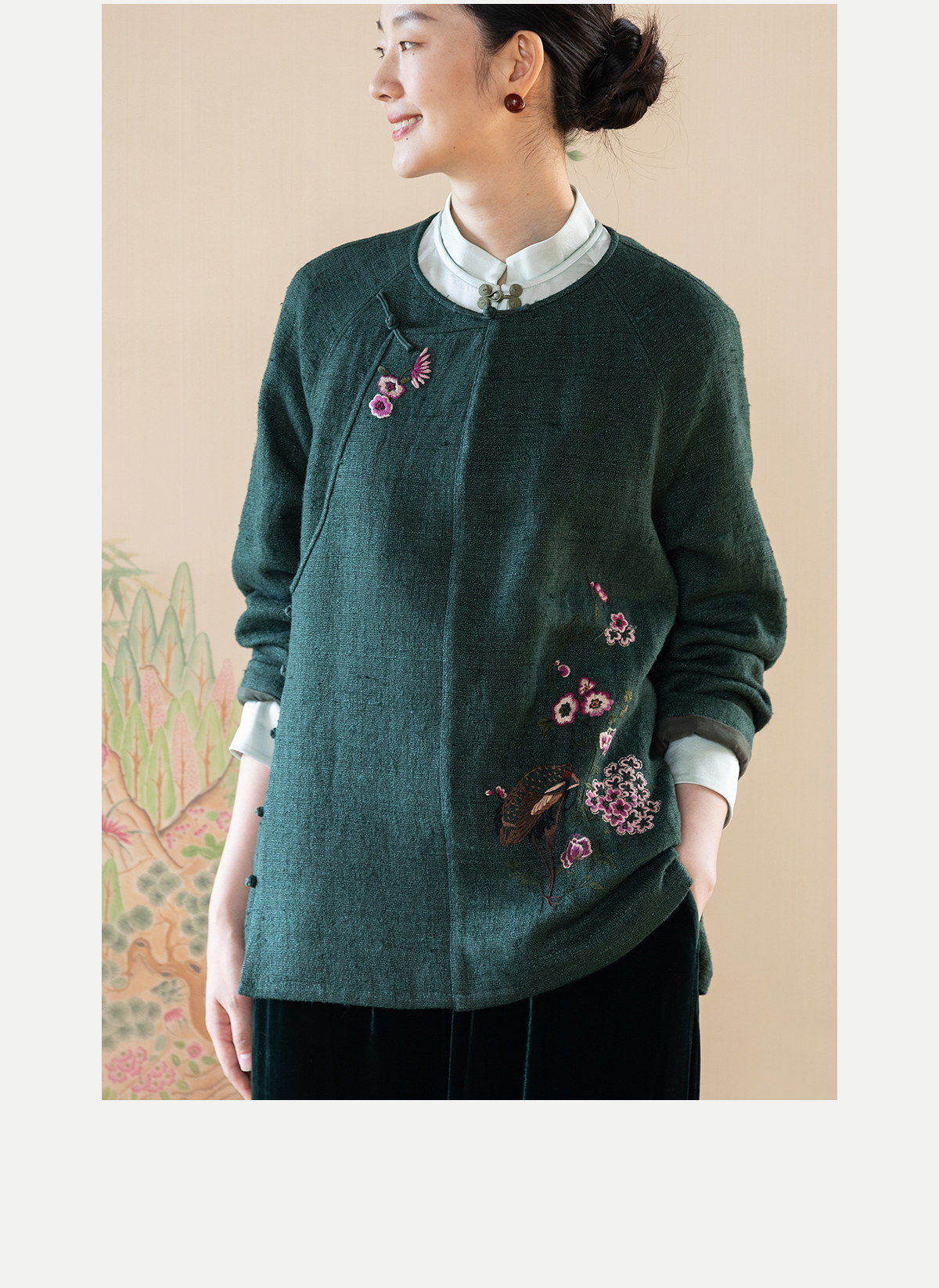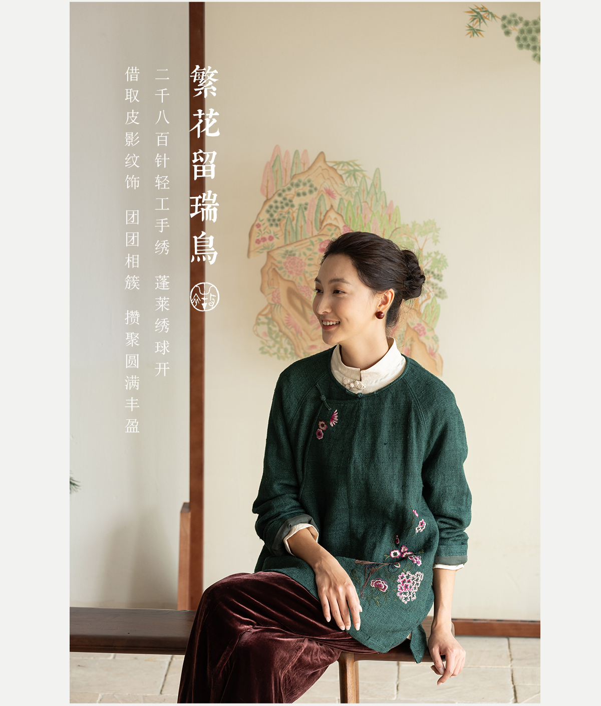 牧衣游原创 柞蚕丝混亚麻手工刺绣短外套绿色文艺复古禅意 离毓
