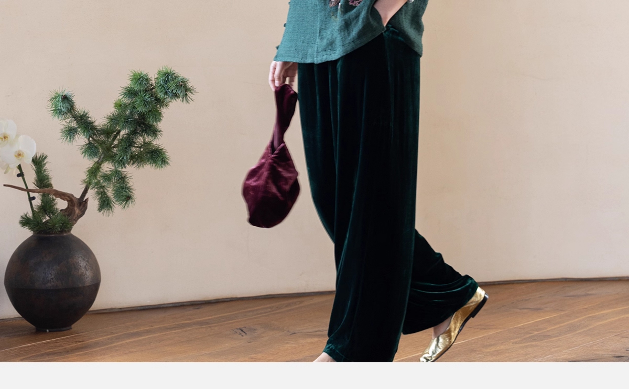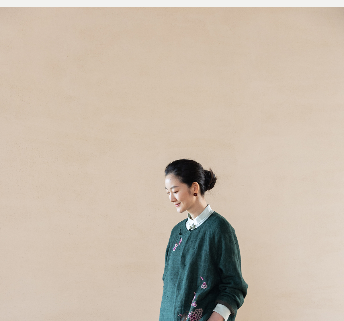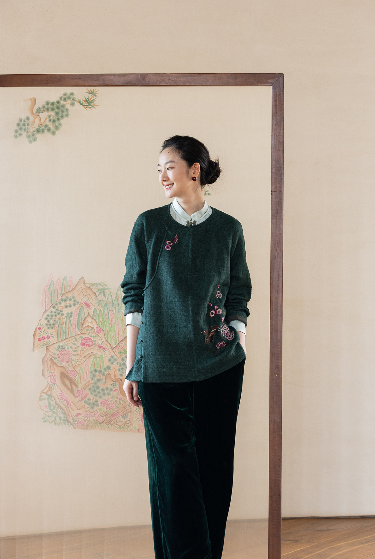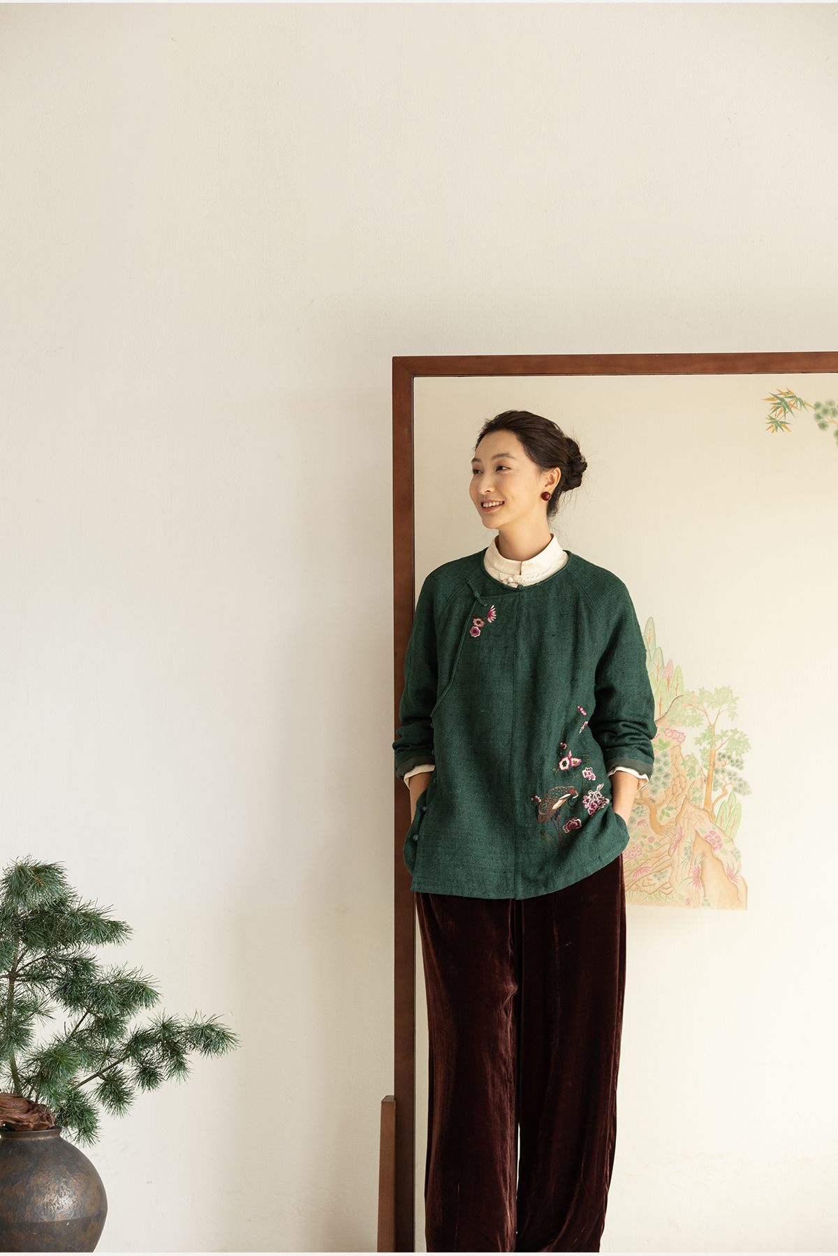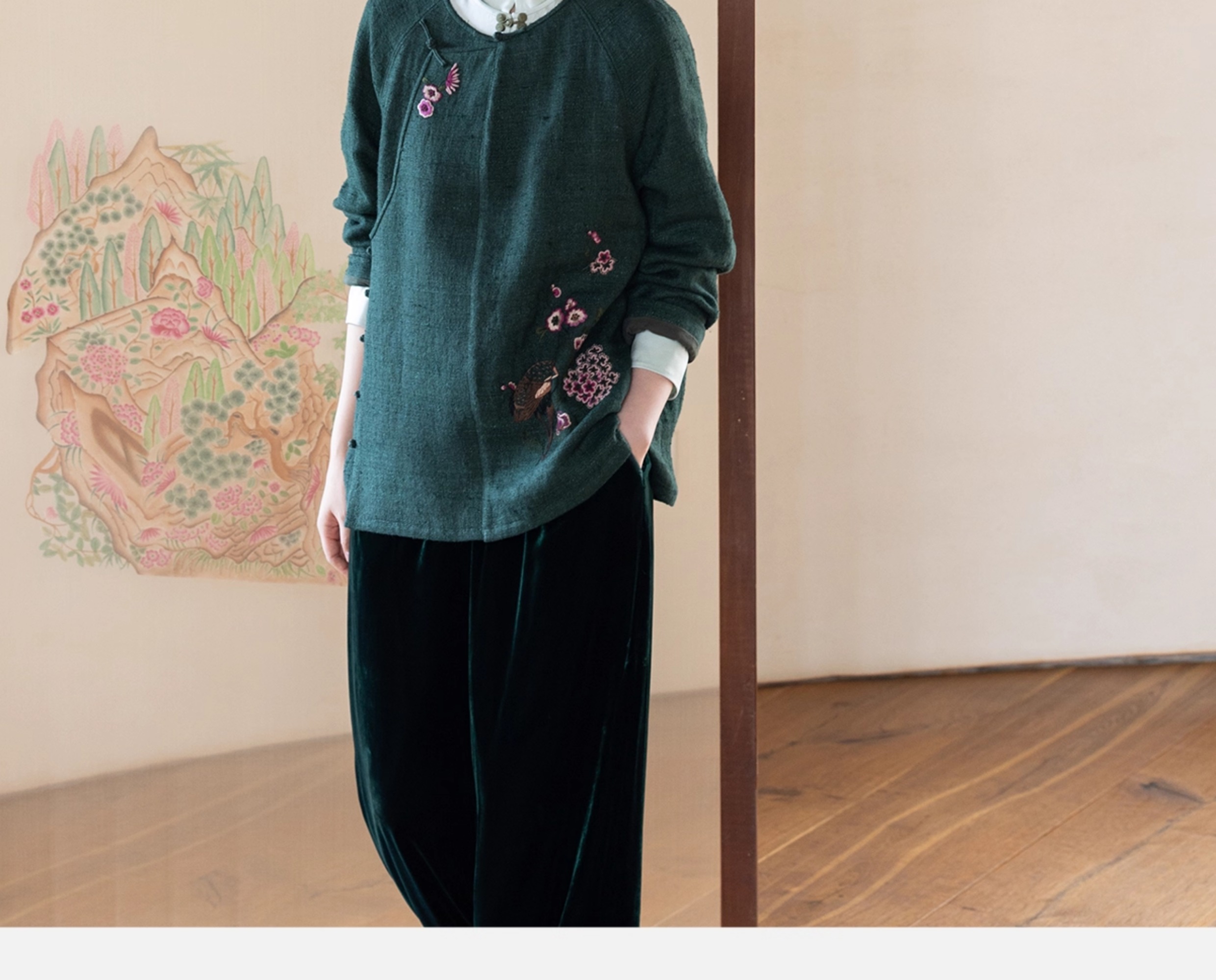 牧衣游原创 柞蚕丝混亚麻手工刺绣短外套绿色文艺复古禅意 离毓