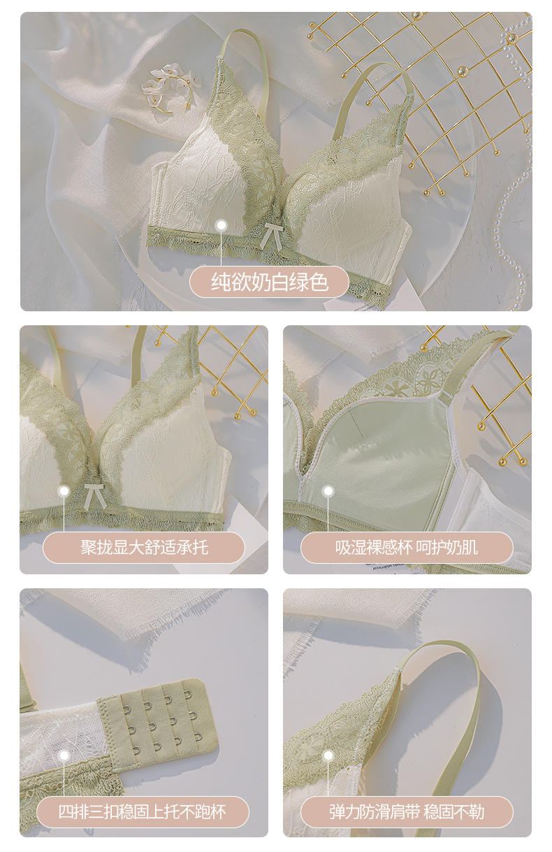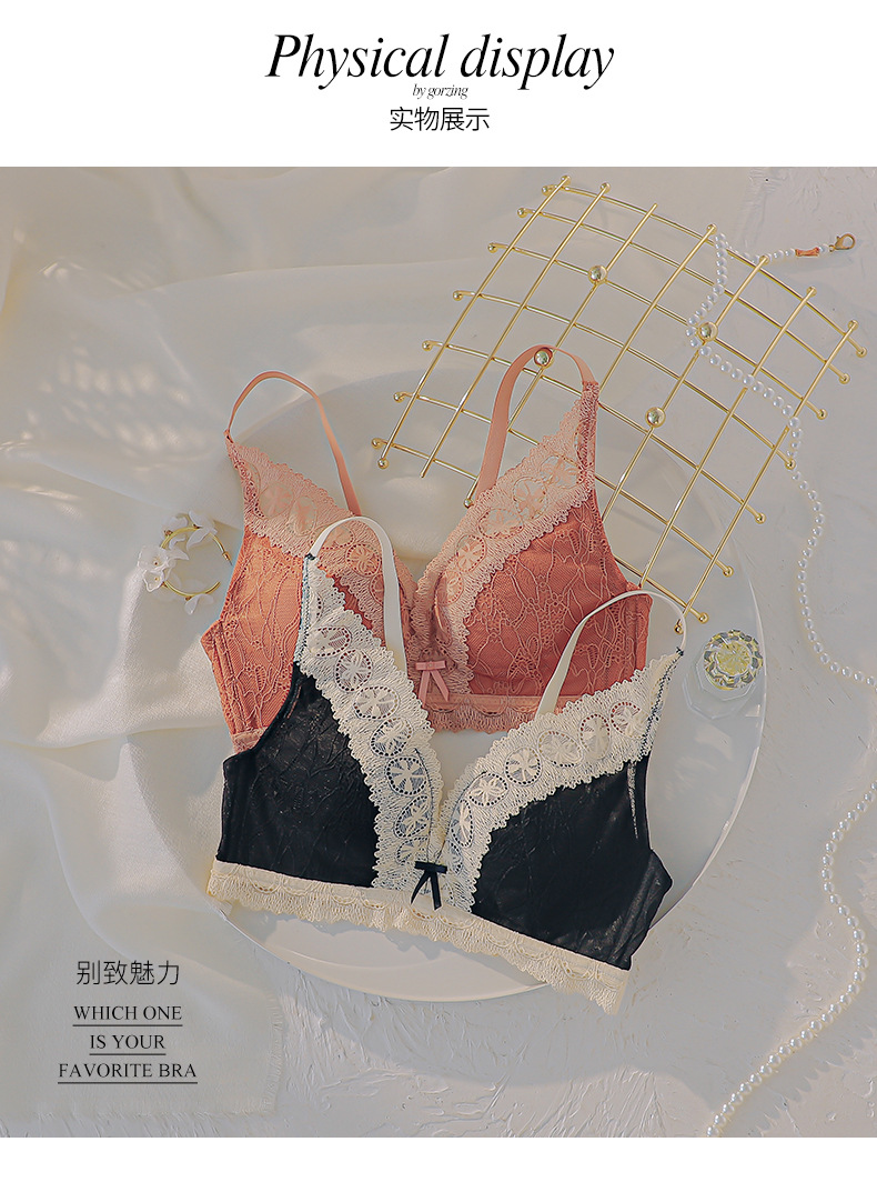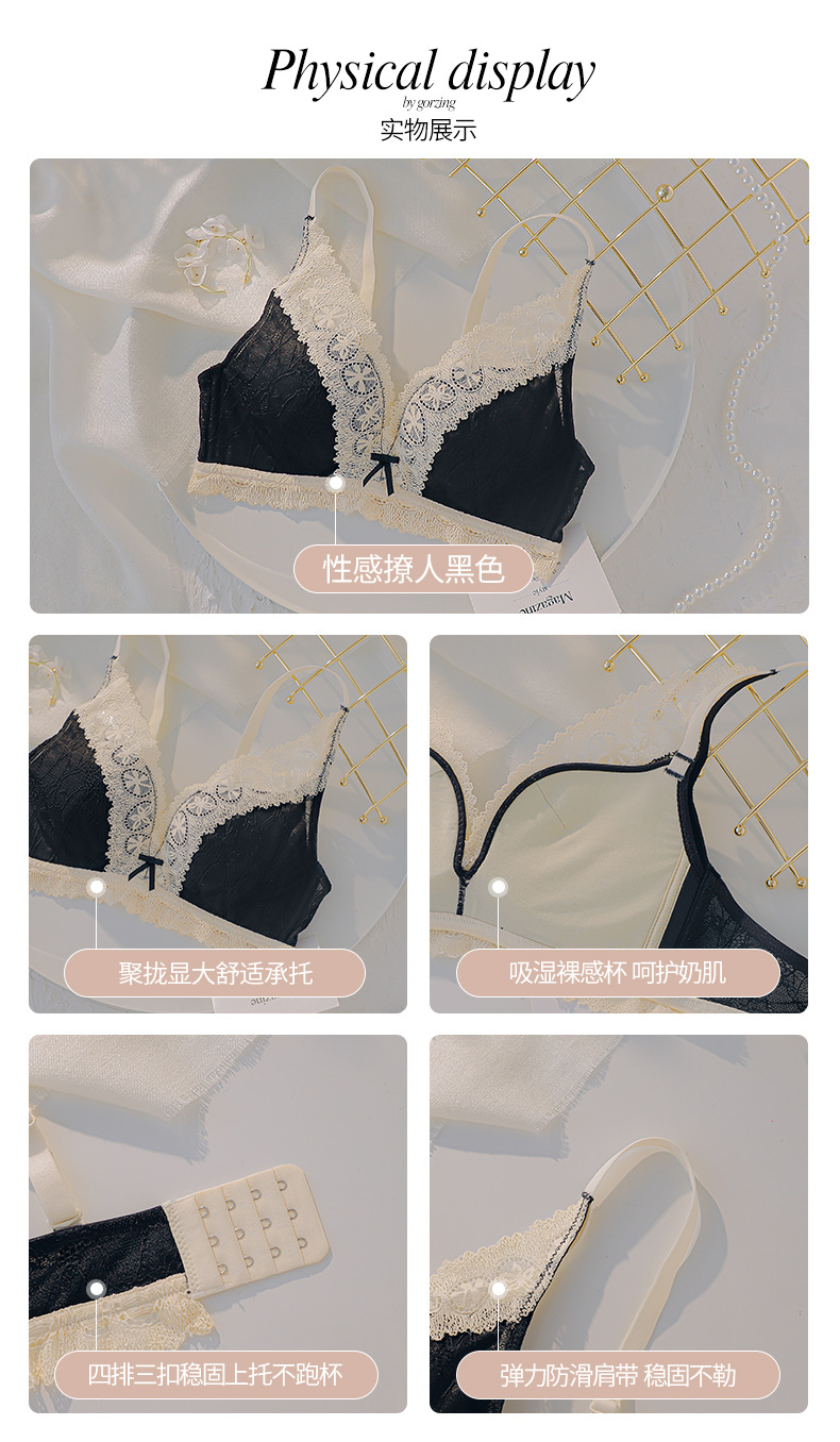 纯欲撩人轻奢内衣女小胸聚拢收副乳防下垂蕾丝纯欲内衣少女无钢圈聚拢文胸