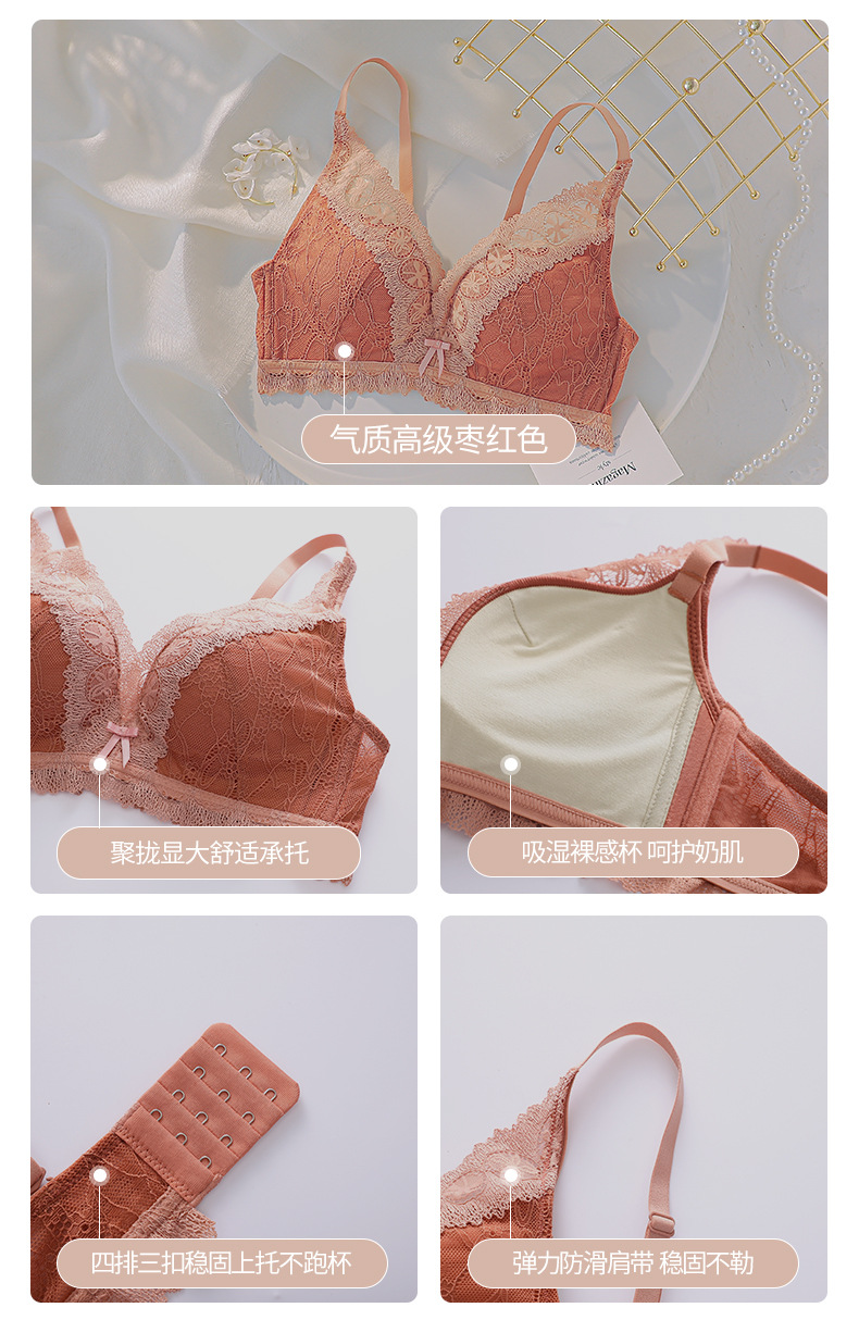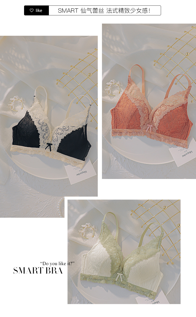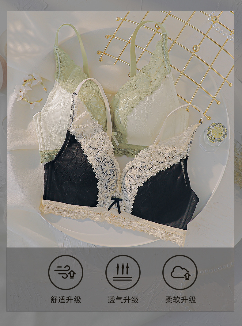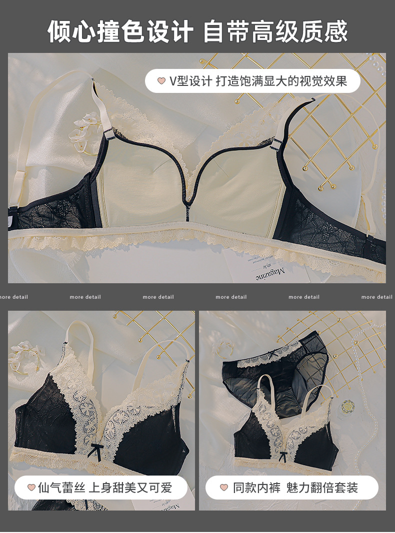 纯欲撩人轻奢内衣女小胸聚拢收副乳防下垂蕾丝纯欲内衣少女无钢圈聚拢文胸