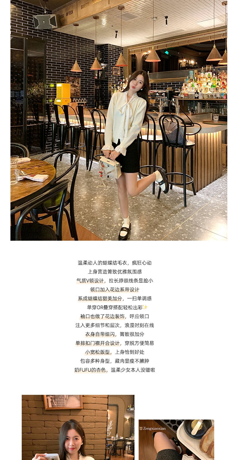 <曾小咸推荐>韩系设计感蝴蝶结系带毛衣