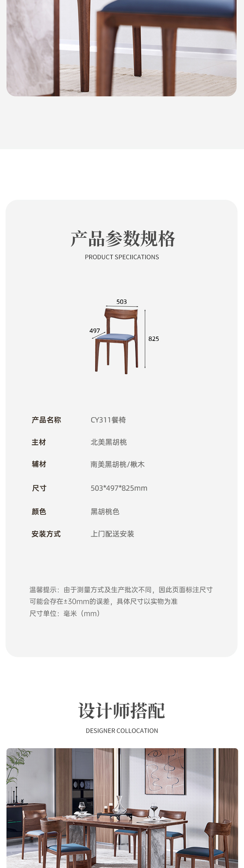 【现代风-CY311餐椅】现代风/餐厅/北美黑胡桃木/实木+超纤皮餐椅