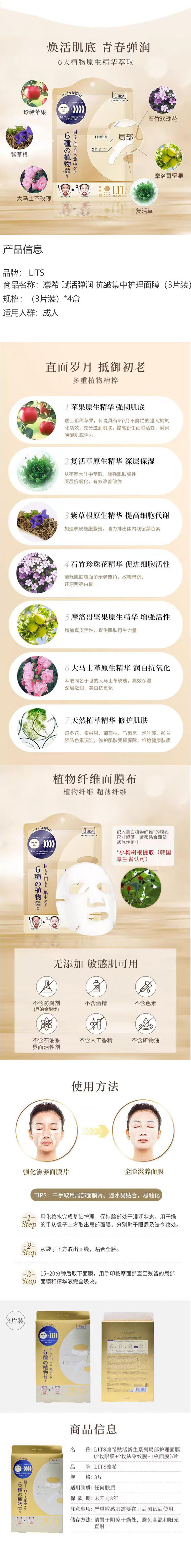 【4盒】凛希 赋活弹润 抗皱集中护理面膜 3片装