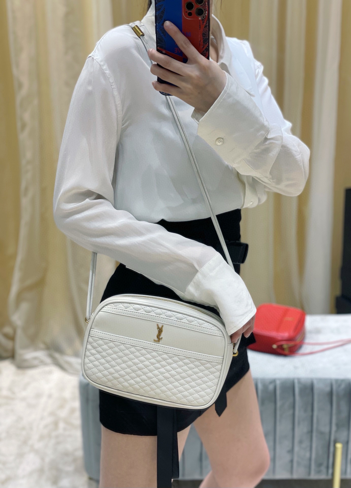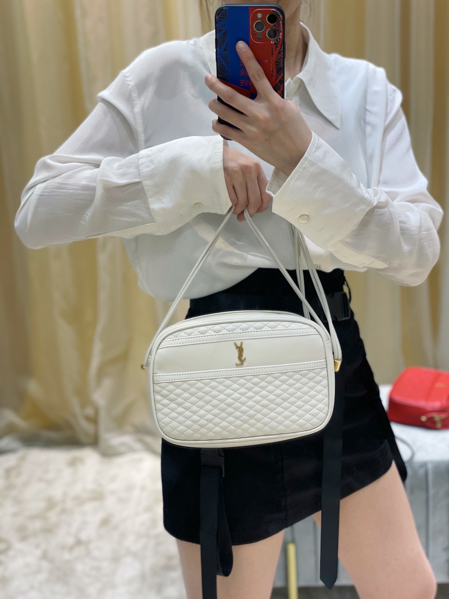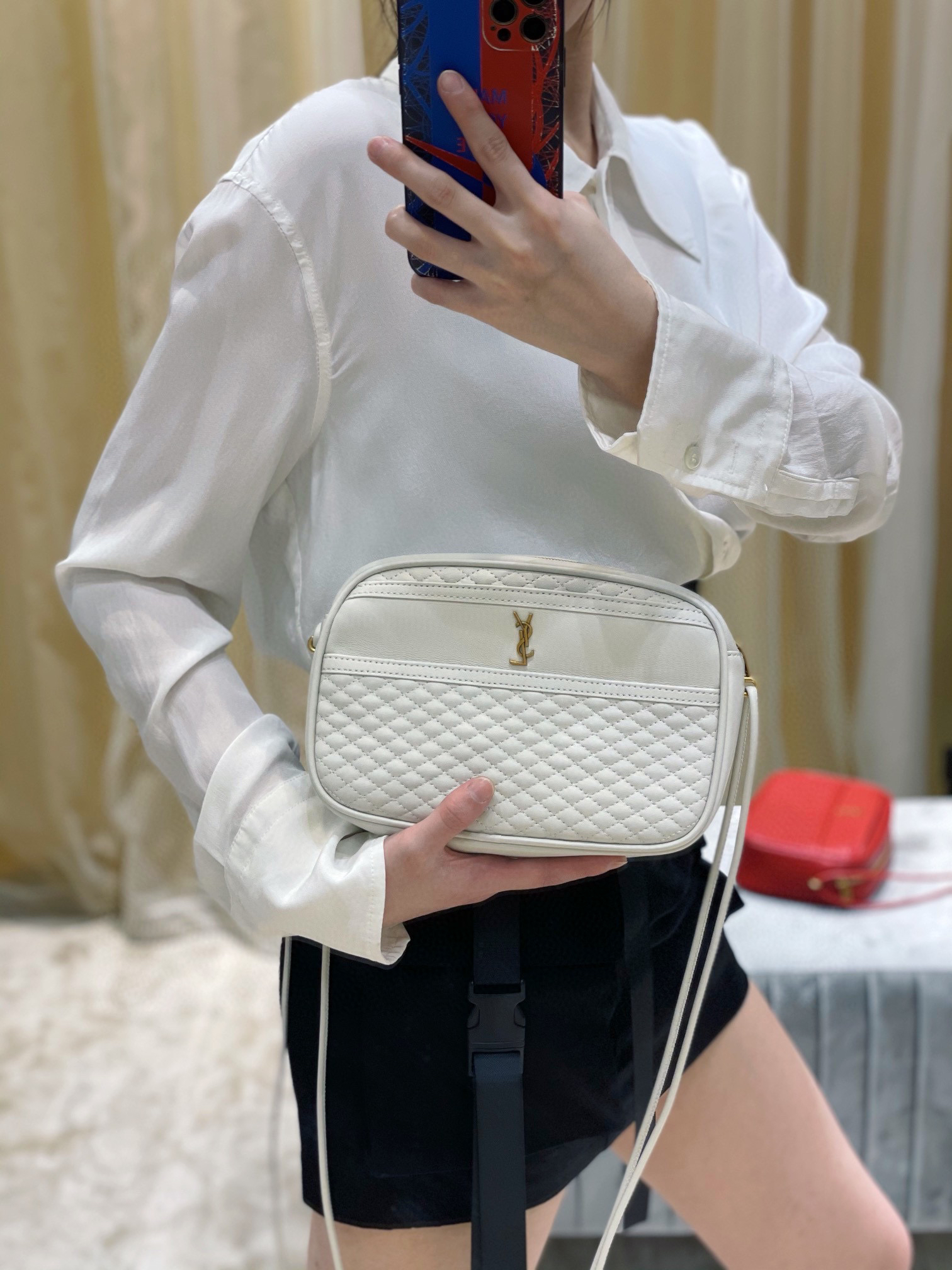 2021春季新品Y家菱格相机包,选用优质进口小羊皮,手感柔软而又细腻,搭配菱格绗缝工艺,整体散发出复古又休闲的感觉;缩小了的品牌logo使得整个包都更低调内敛;大开口的开合拉链设计,方便容纳更多的物品;最特别的是双绳子叠合肩带,摒弃了传统五金配饰,大大的减轻了包包的重量,使得它包身自重几乎可以忽略不计,出门轻装上阵的感觉简直不要太爽了!p750