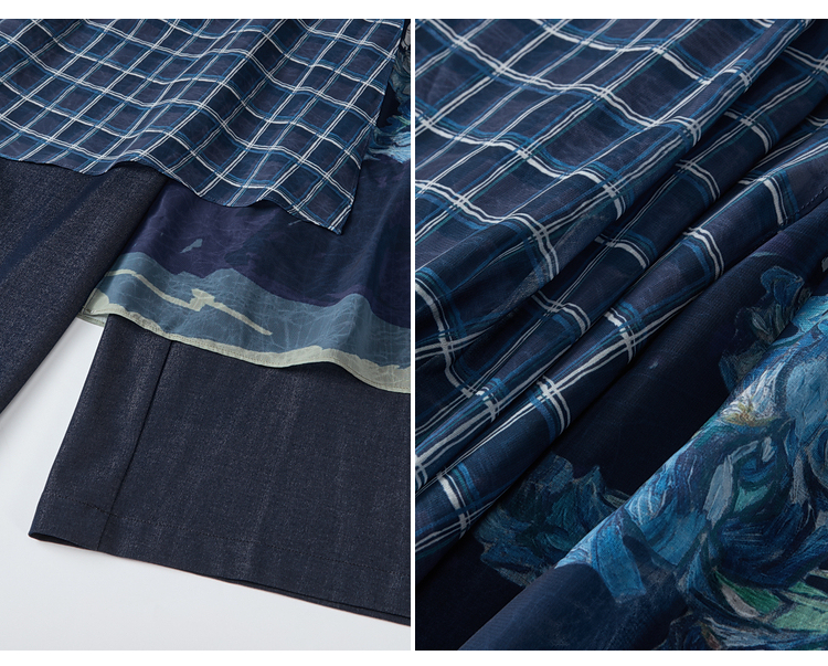 两三事 星隙独舞 2025夏季新款复古印花布拼接假两件吊带裙连衣裙