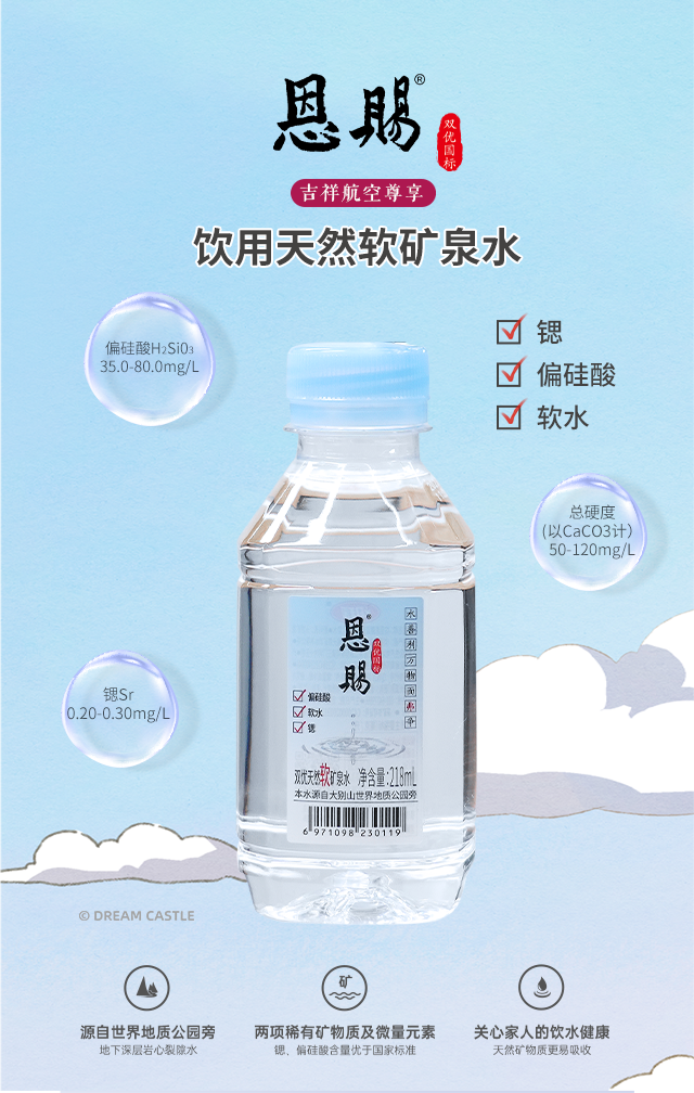 均瑶健康吉祥航空同款恩赐双优天然软矿泉水218ml*24瓶