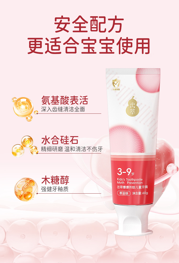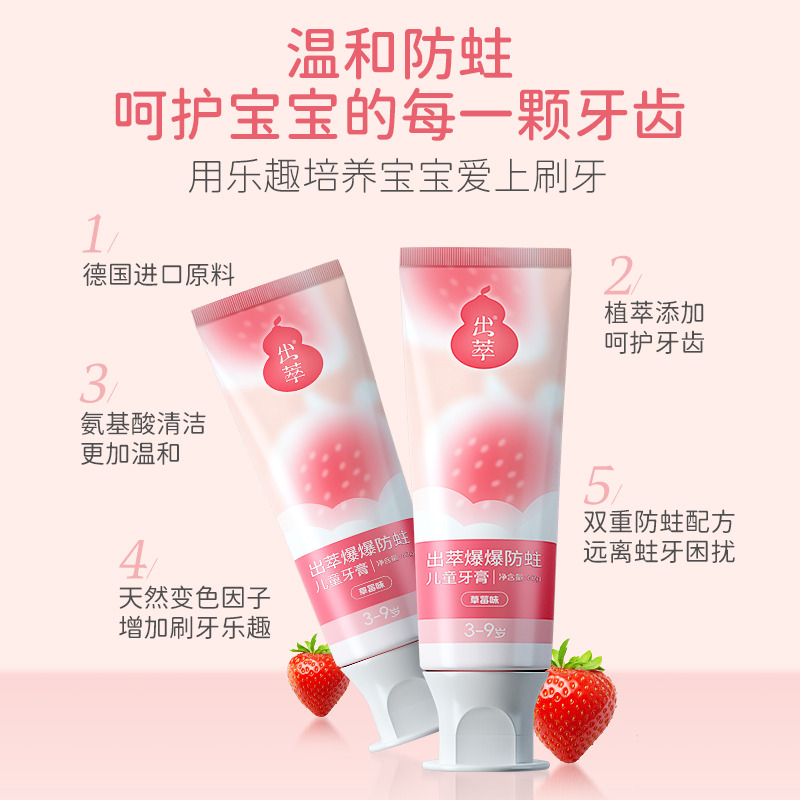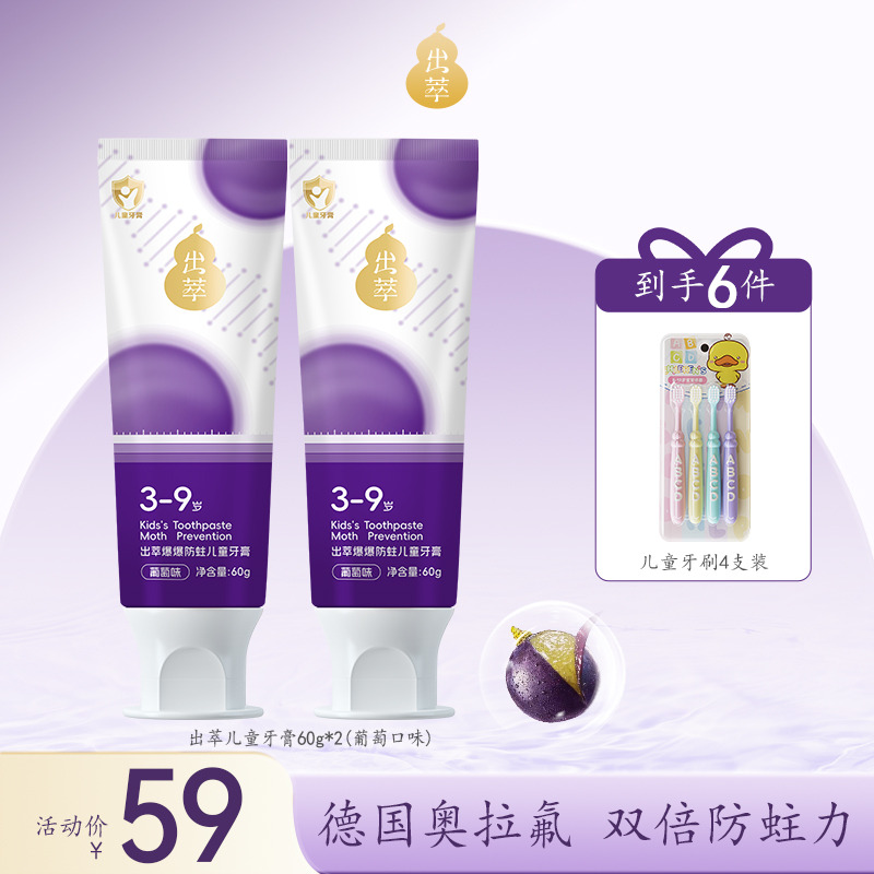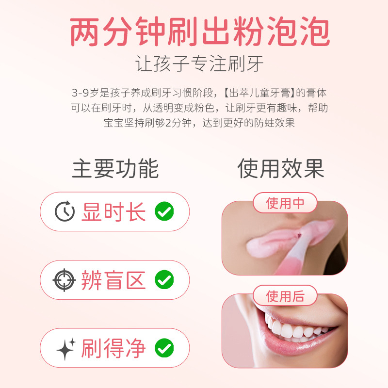 出萃爆爆防蛀儿童牙膏60g*2德国奥拉氟双氟防蛀2分钟变色孩子爱上刷牙