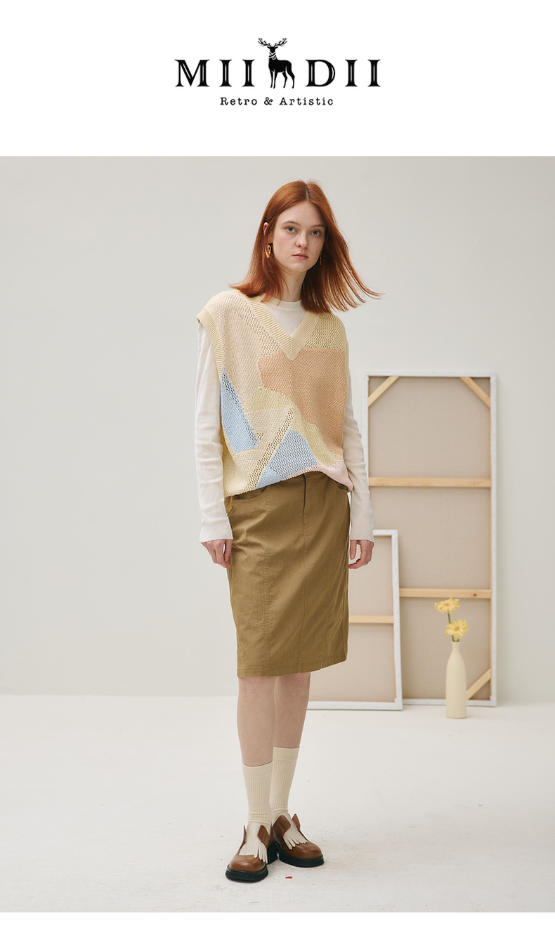 谜底套头针织衫马甲女2025秋季新品文艺风原创提花宽松253MZ1306