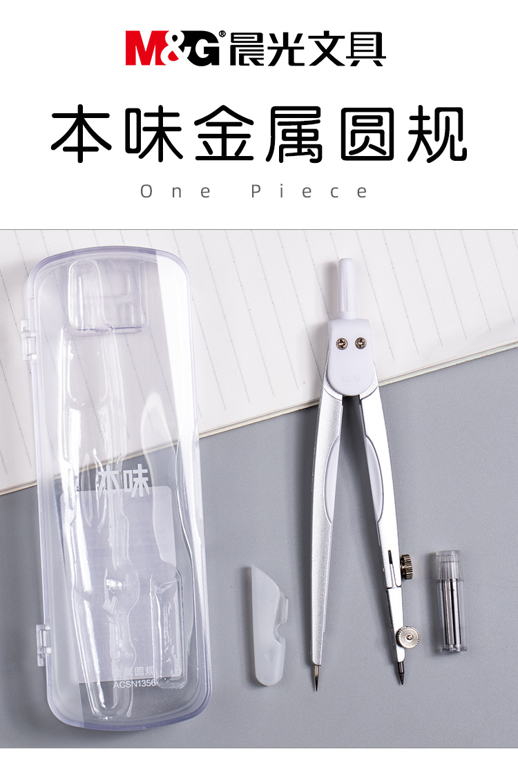 晨光本味金属圆规纯色ACSN1356磨砂收纳盒装学生考试专用半圆绘图优品磨砂银机械制图