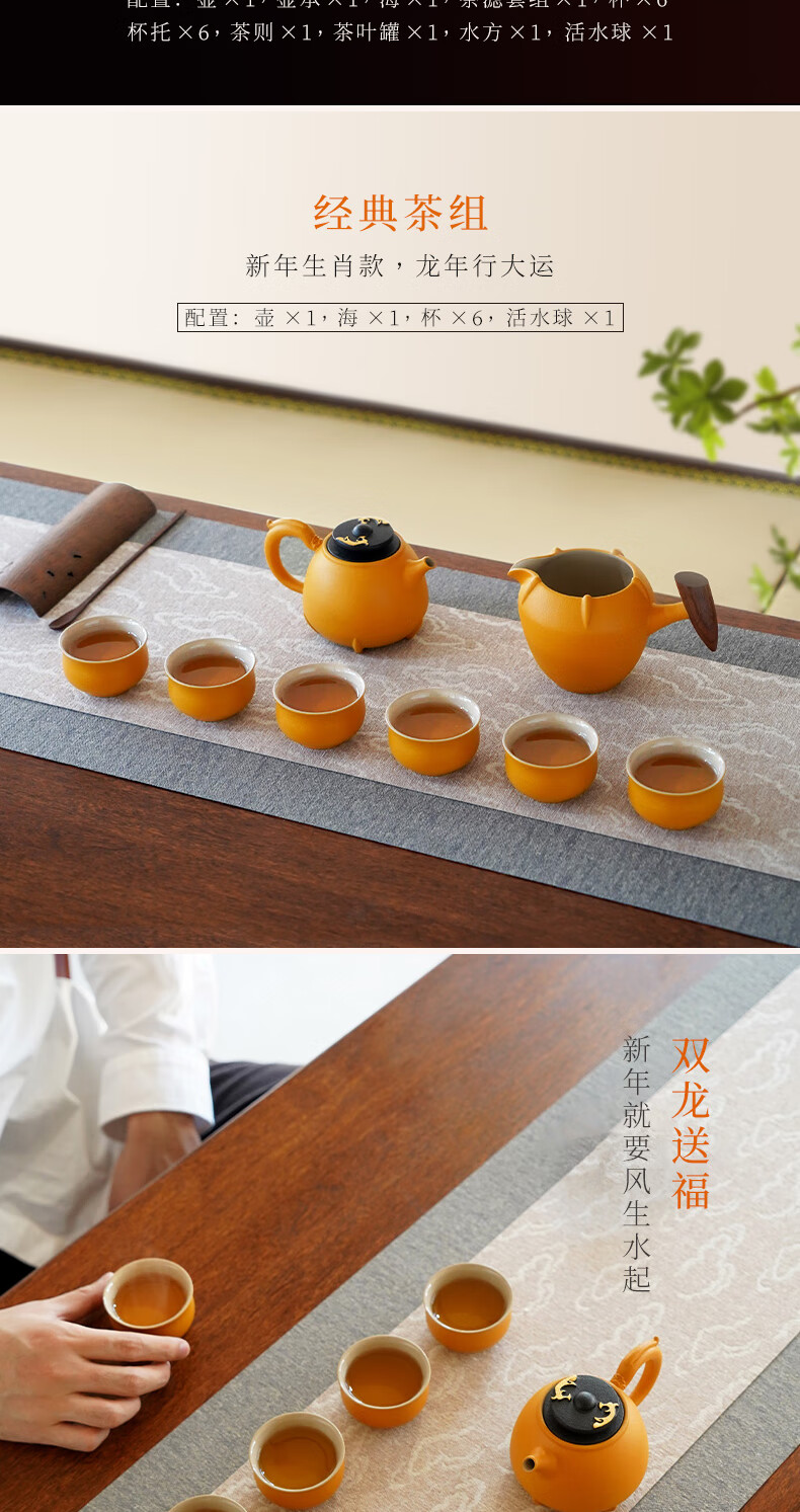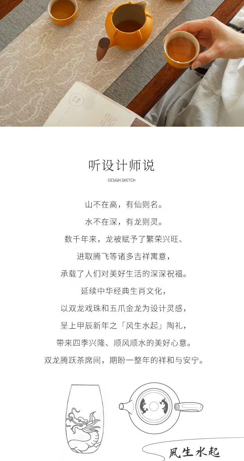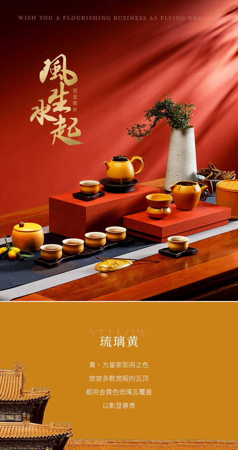 陆宝龙年茶具套装礼盒 风生水起茶杯茶壶中国风家用功夫茶具 新年礼品 风生水起茶礼 9头