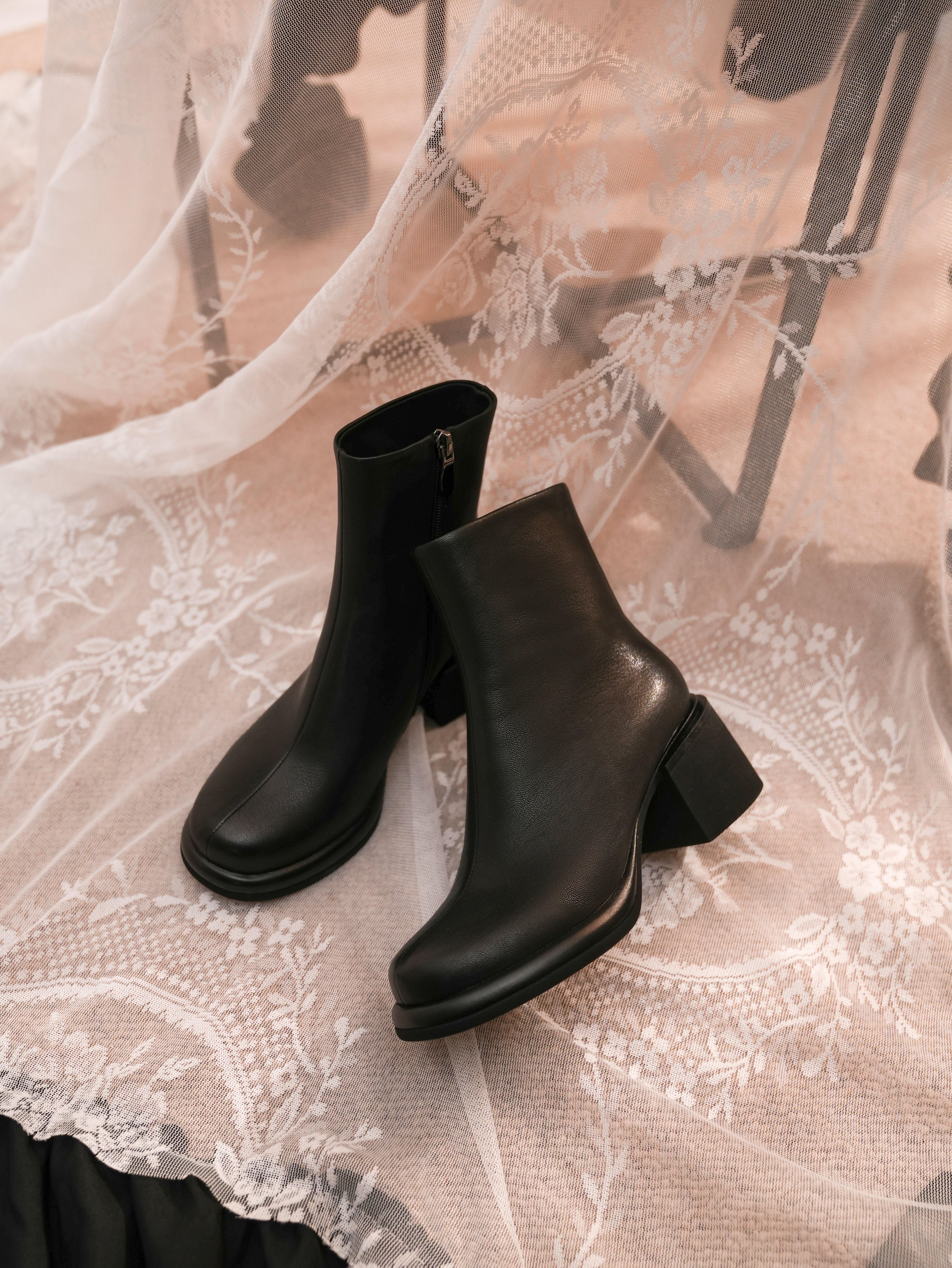 豪麟名鞋迪嘉女鞋短靴羊皮革DJQYA52WN015黑色