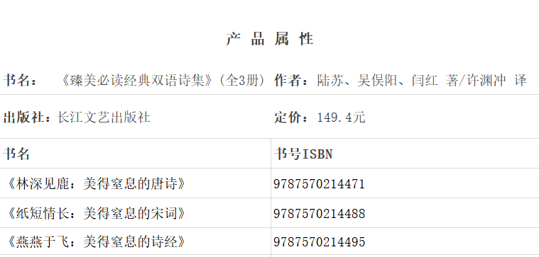 臻美必读经典双语诗集 陆苏 吴俣阳 闫红 著;许渊冲 译 长江文艺出版社