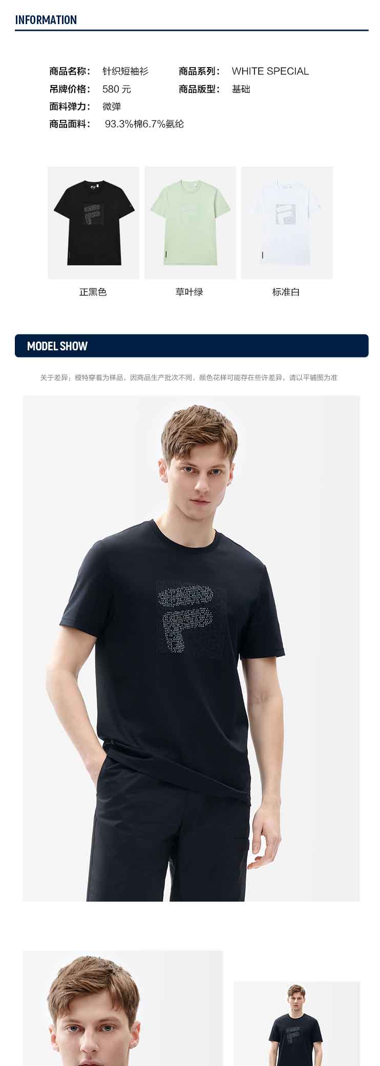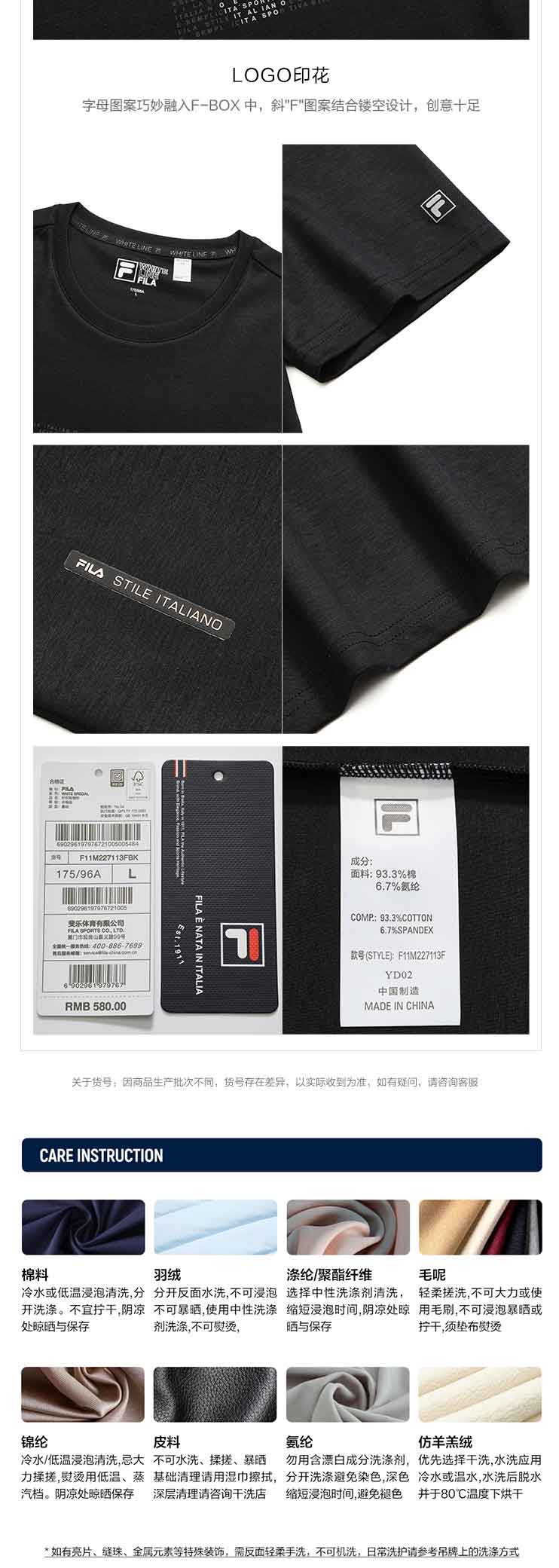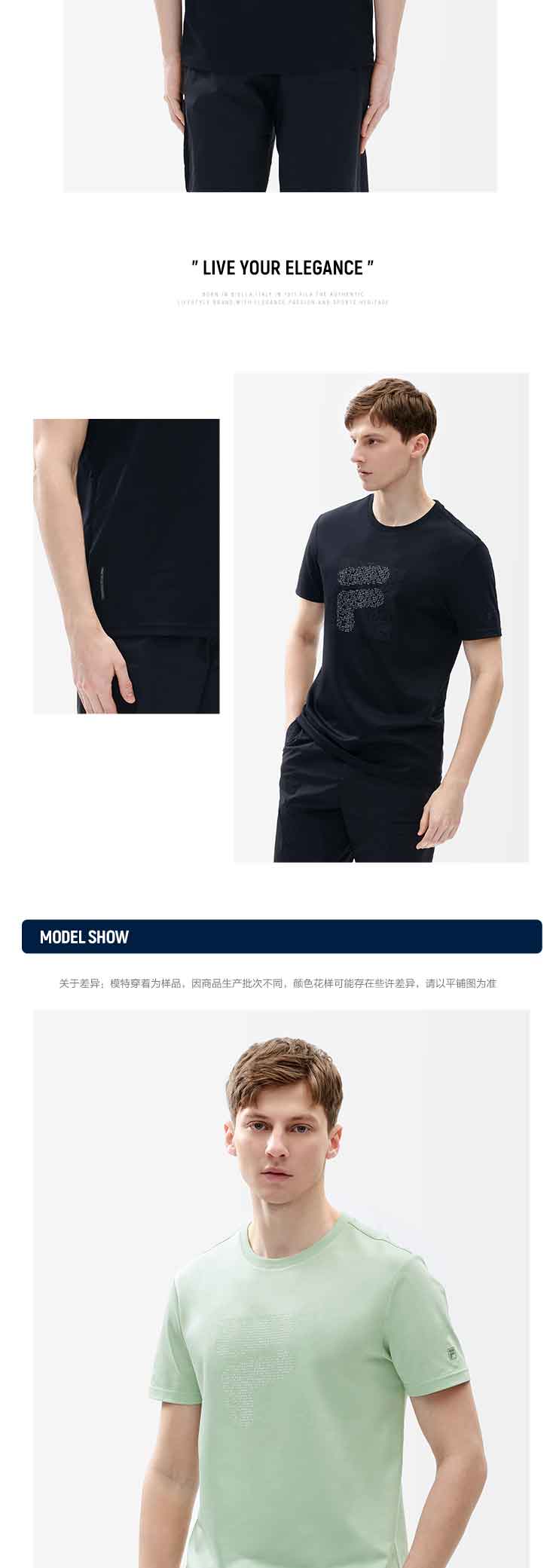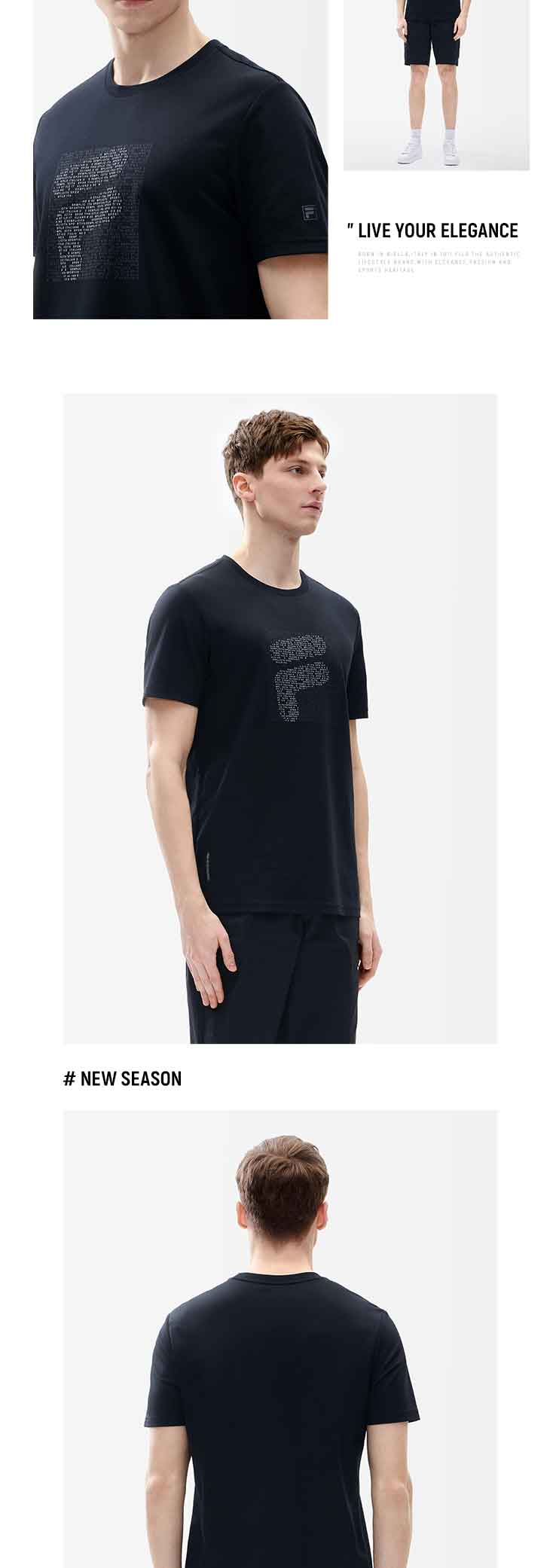FILA 斐乐【黄景瑜同款】男子短袖T恤2022年夏季新款运动经典款F11M227113F