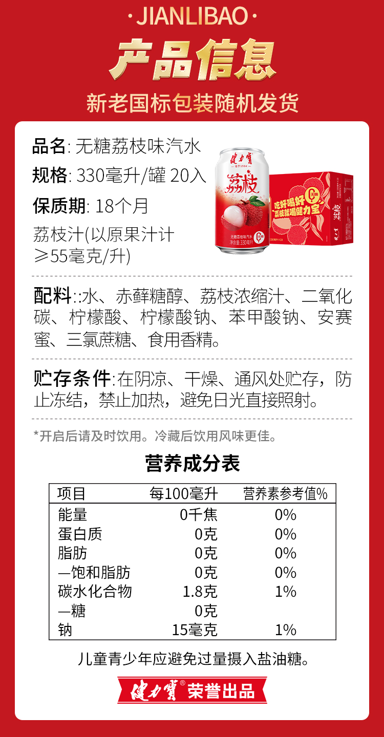 健力宝无糖橙蜜味330ml*24罐碳酸饮料