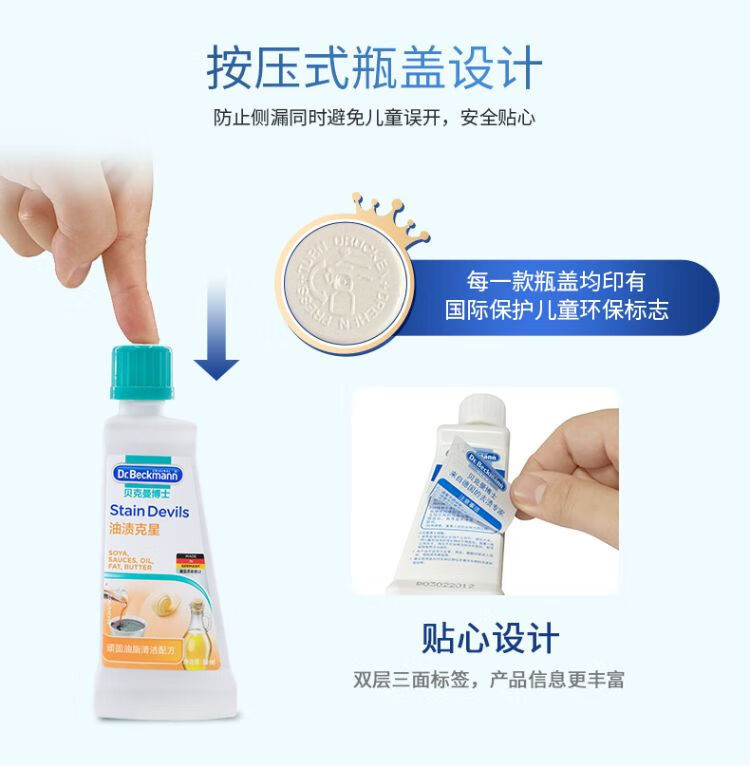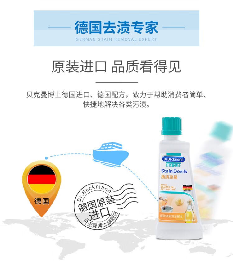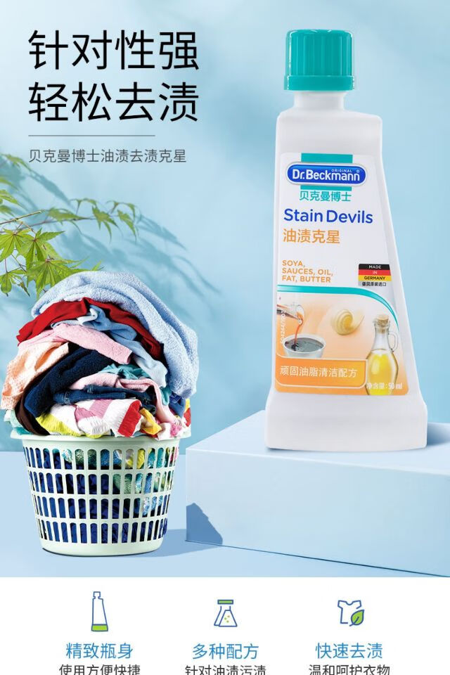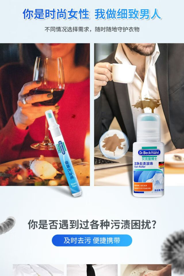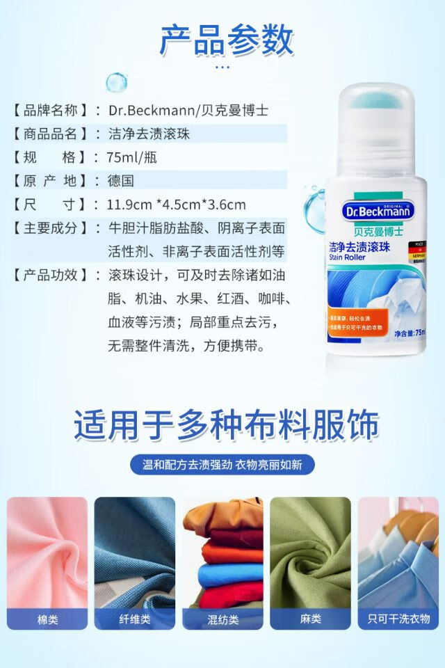 贝克曼洁净去渍滚珠75ml+贝克曼便携去渍笔4ml+贝克曼油渍克星50ml/组
