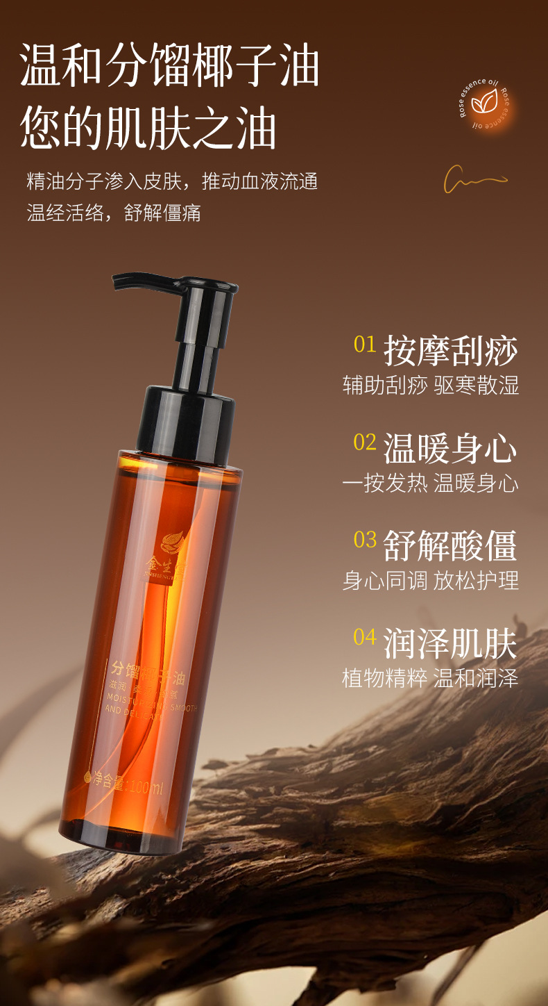 分馏椰子油按摩润体精油私密SPA免洗发热开背滑全身刮痧剂男女批 商品图1