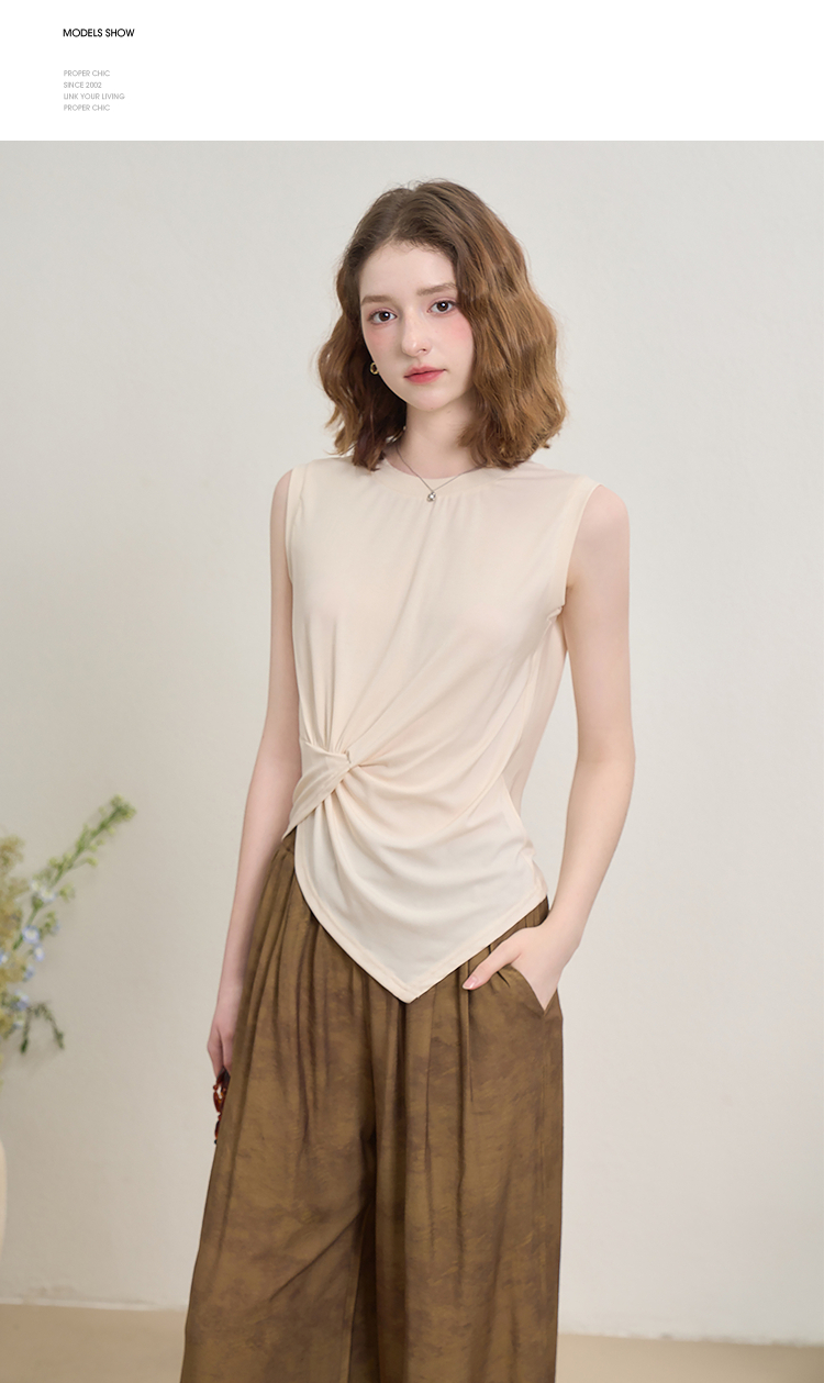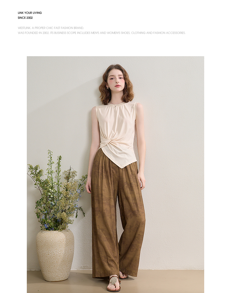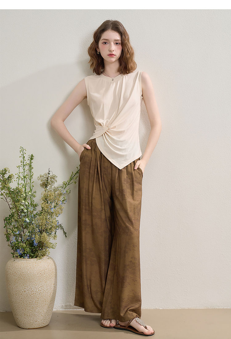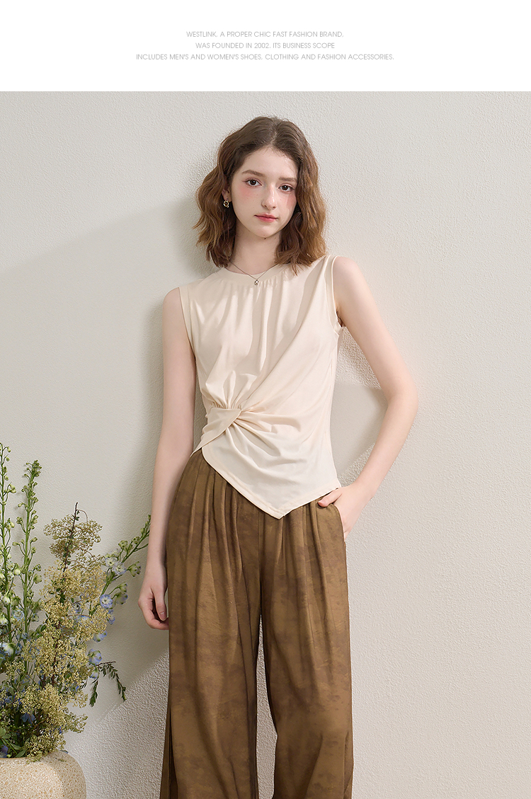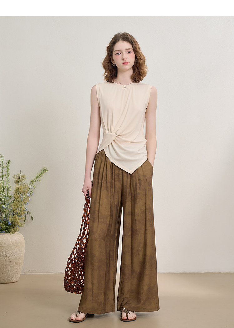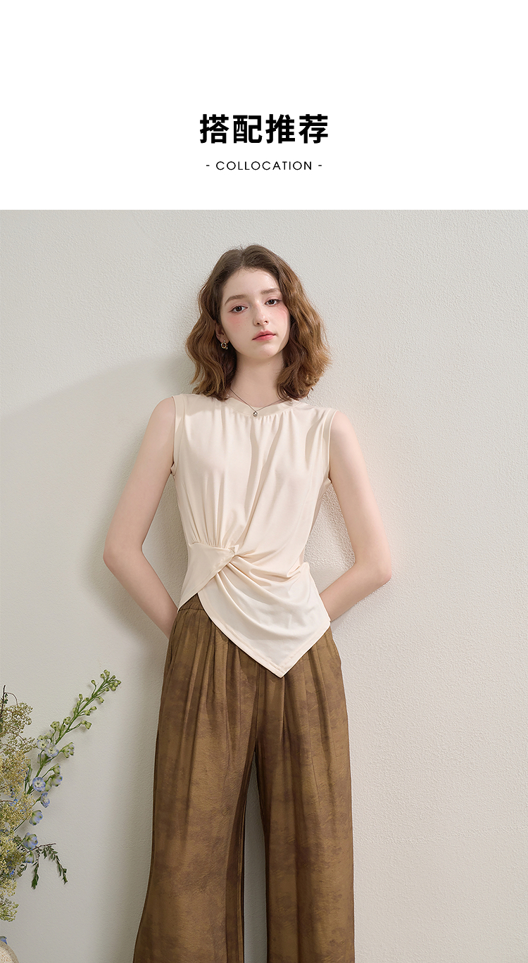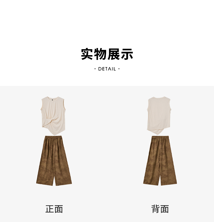 【限时秒杀】新中式国风套装女夏季不规则扭结无袖上衣搭阔腿裤两件套LXD51047